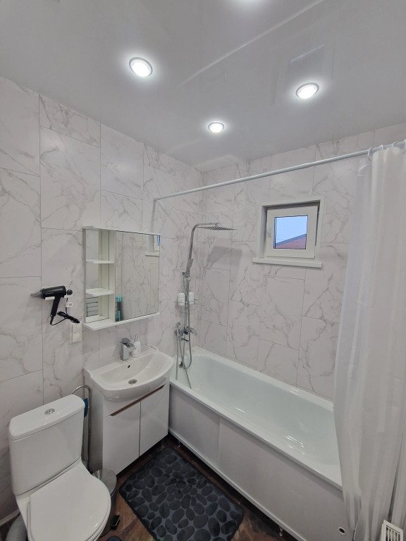 Территория 7 соток с парковкой на 3 машины полностью огорожена и находится в распоряжении гостей. В доме 5 изолированных комнат. Есть баня и банный чан с размещением на 6 человек.