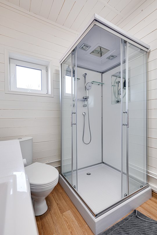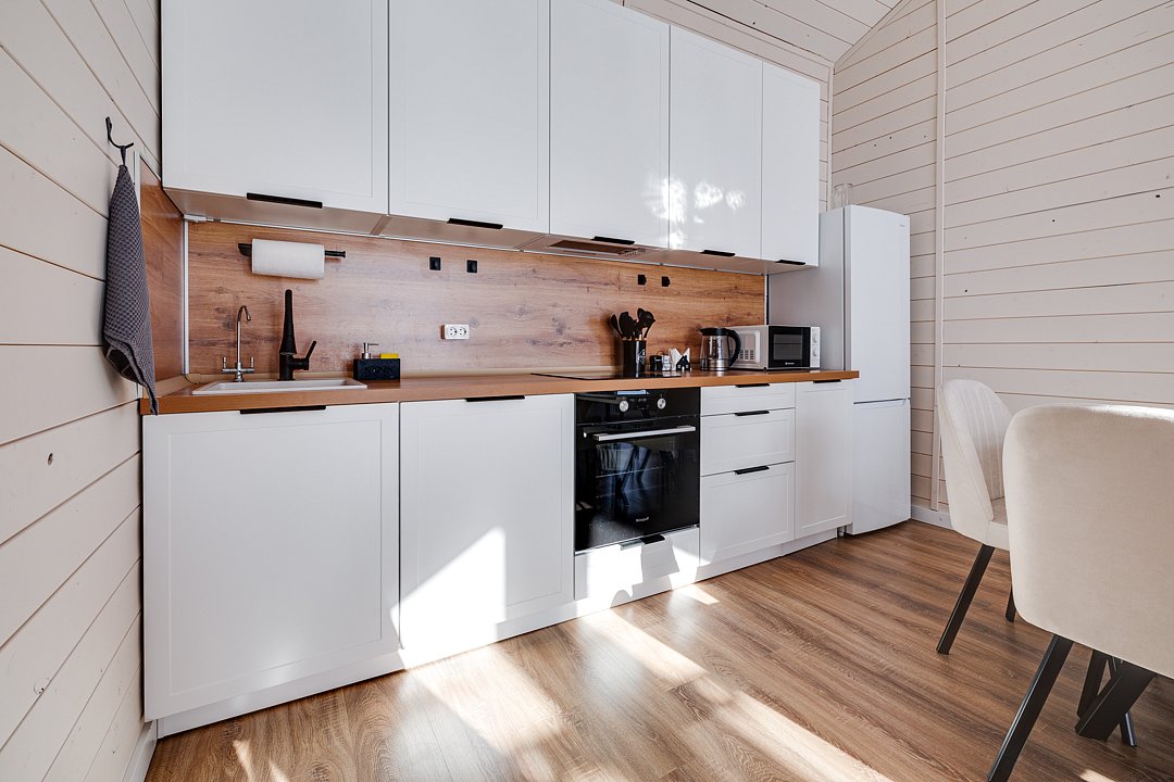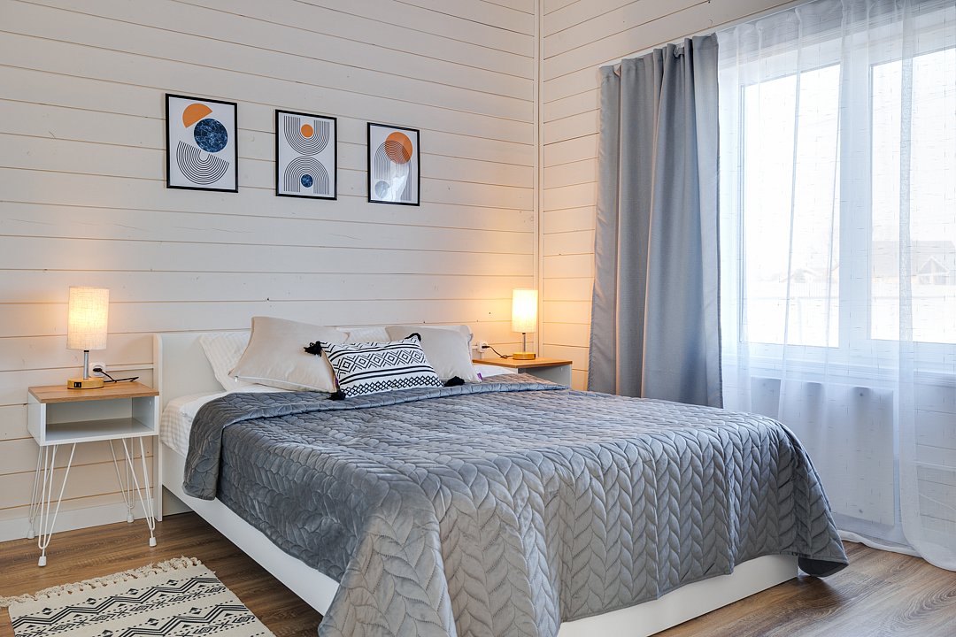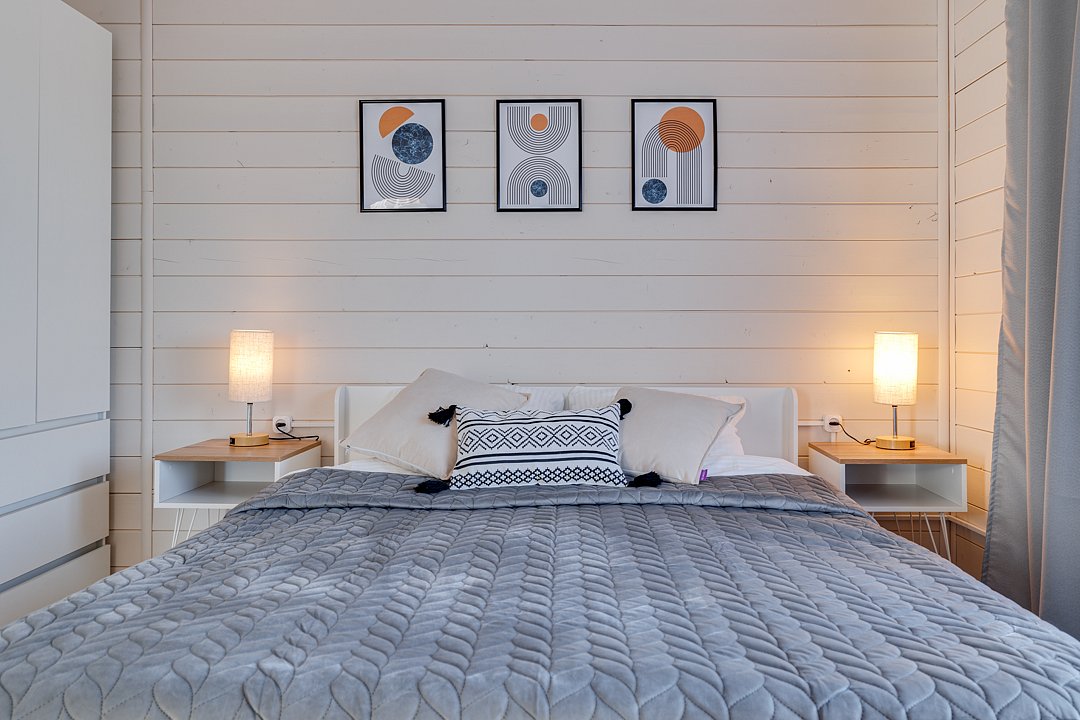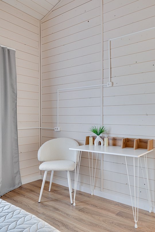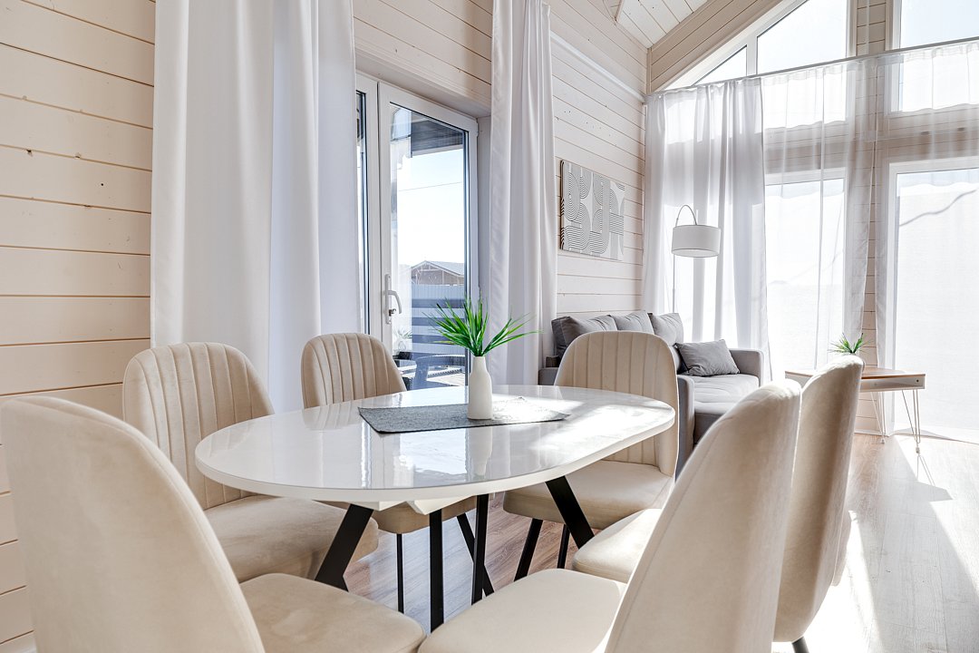 2‑комнатный дом (82 м²) с панорамными окнами, уютной террасой и мангальной зоной — идеальное место для семейного праздника или отдыха с друзьями.