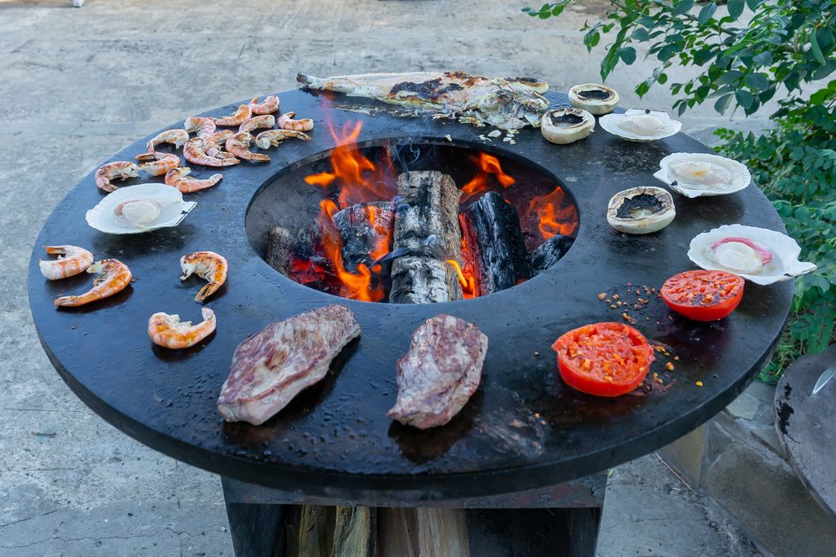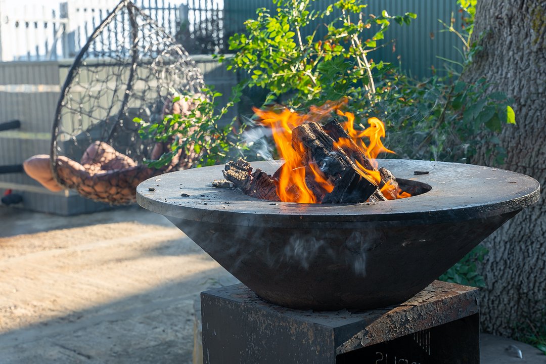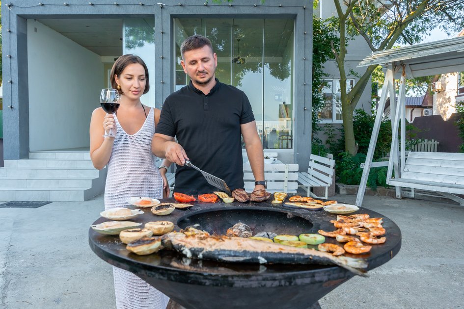 На территории установлен мангал‑очаг, где гости в спокойной обстановке готовят ароматные блюда на открытом воздухе. Живое пламя и уютная атмосфера превращают такие трапезы в теплое и запоминающееся событие.