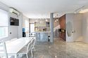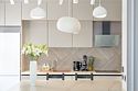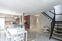 Кухня-столовая оборудована набором посуды на двенадцать персон, электроплитой, холодильником, микроволновой печью, электрическим чайником, капсульной кофеваркой (предоставляются десять капсул), льдогенератором, морозильной камерой и посудомоечной машиной.