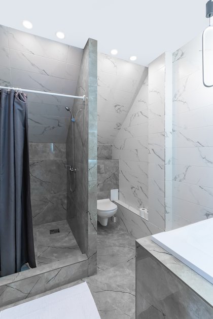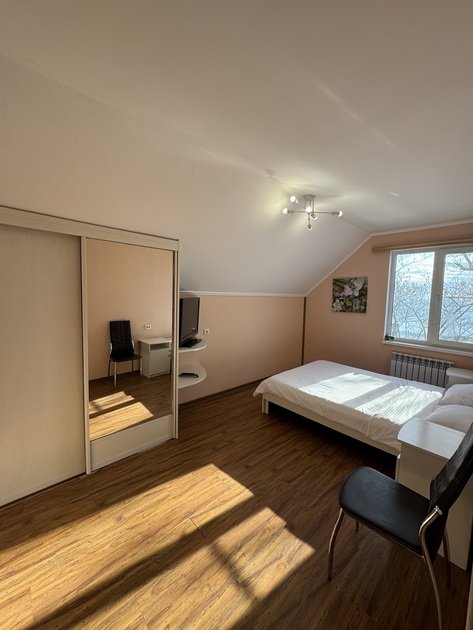 Два санузла расположены на первом и втором этаже, горячая вода подается круглосуточно. На обоих этажах установлены сплит-системы, которые работают как на охлаждение, так и на обогрев.
