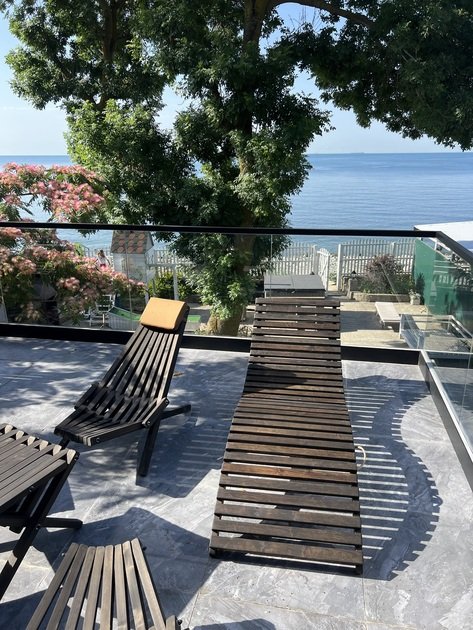 Коттедж «Кипарис» — идеальное место для компании до двенадцати человек, где комфорт встречается с живописным морским пейзажем. Этот просторный шестикомнатный дом сочетает в себе пять уютных спален и открытую кухню-гостиную с обеденной зоной, создавая атмосферу уюта для всех гостей. На первом этаже располагается сауна, санузел со стиральной машиной и закрытая веранда с выходом к чану на дровах — идеальному месту для расслабления после насыщенного дня.