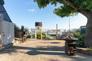 На территории: своя парковка под видеонаблюдением (на четыре-пять автомобилей), свой двор, территория комплекса огорожена, беседка и три мангальные зоны с мебелью и мангалами (обычный мангал, круглый голландский мангал, также есть решетки, шампуры), обеденная зона расположена прямо у самого входа в коттедж, зоны с вечерним освещением, кресла-коконы, качели, лавочка с барным столиком и видом на море, идеально встречать рассвет с чашечкой кофе и закат с бокалом, игровая площадка для детей: детские качели, детский домик, лазалка, песочница, баланс борд, шезлонги, подогреваемая купель.