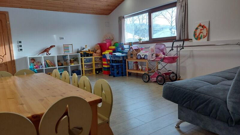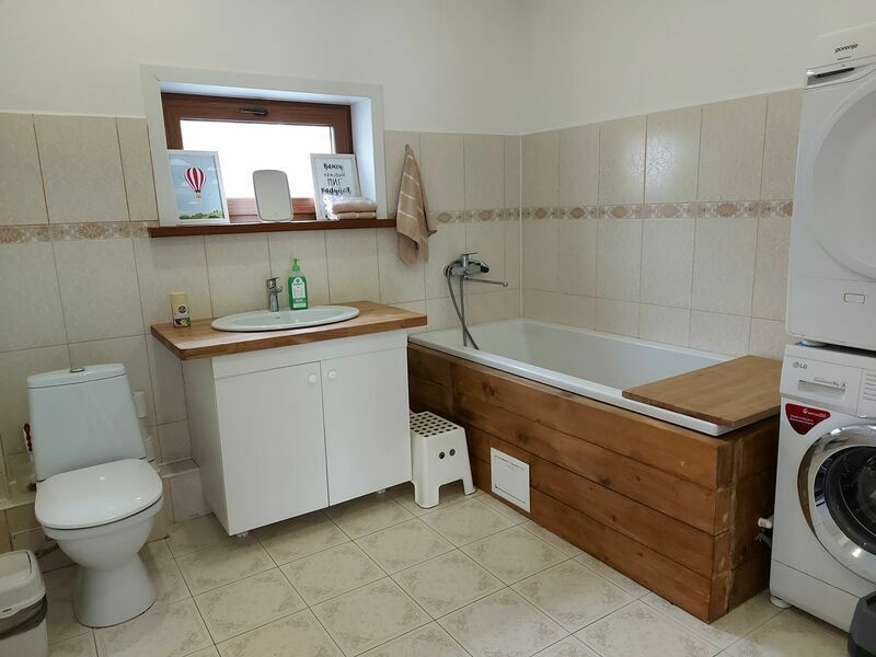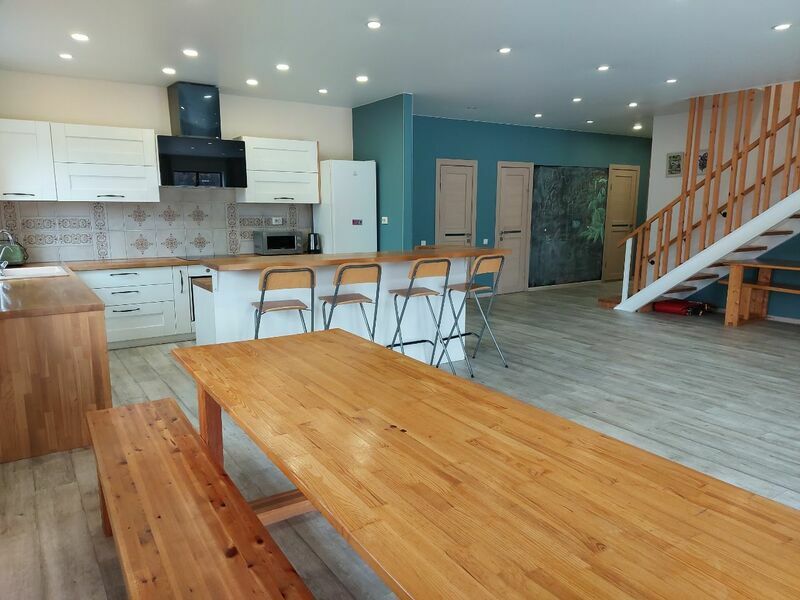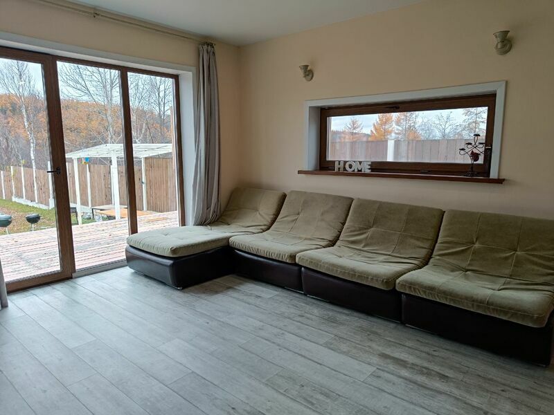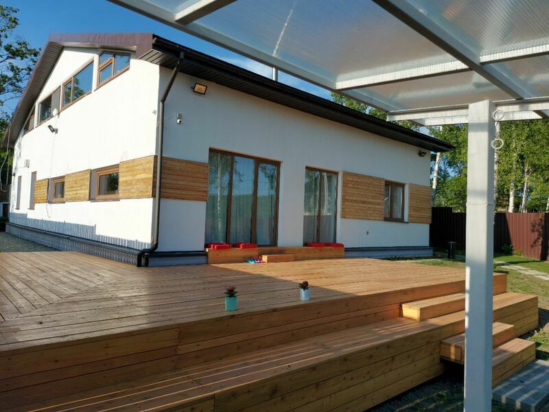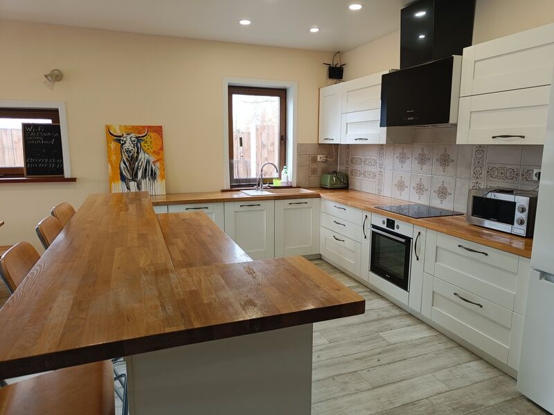 Общая вместимость дома 15 человек. Спальных комнат 4, остальные гости размещаются на дополнительных местах, имеется детская кроватка. В доме – теннисный стол, детская игровая зона, качели, стена для рисования, общая большая кухня, кофемашина, стиральная машина, сушильная машина, посудомоечная машина, 3 санузла.