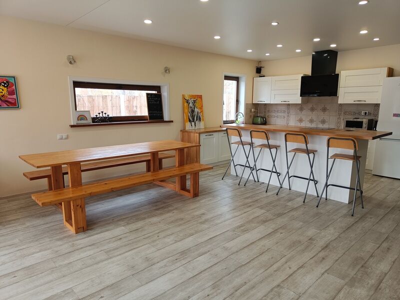 - общая большая кухня, кофемашина, стиральная машина, сушильная машина, посудомоечная машина.