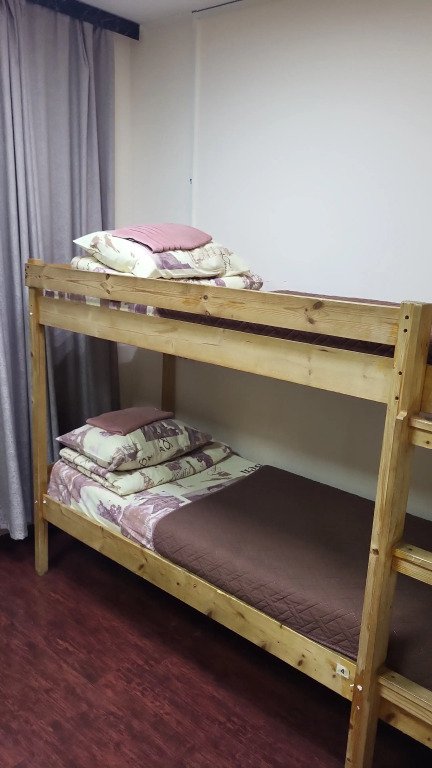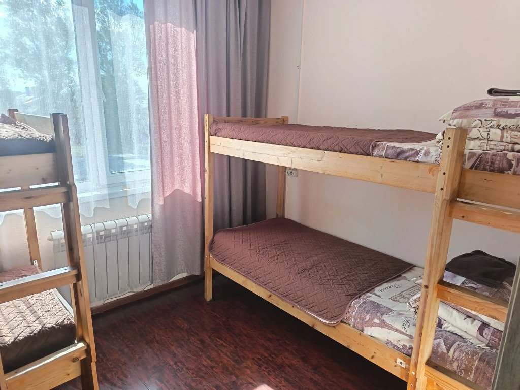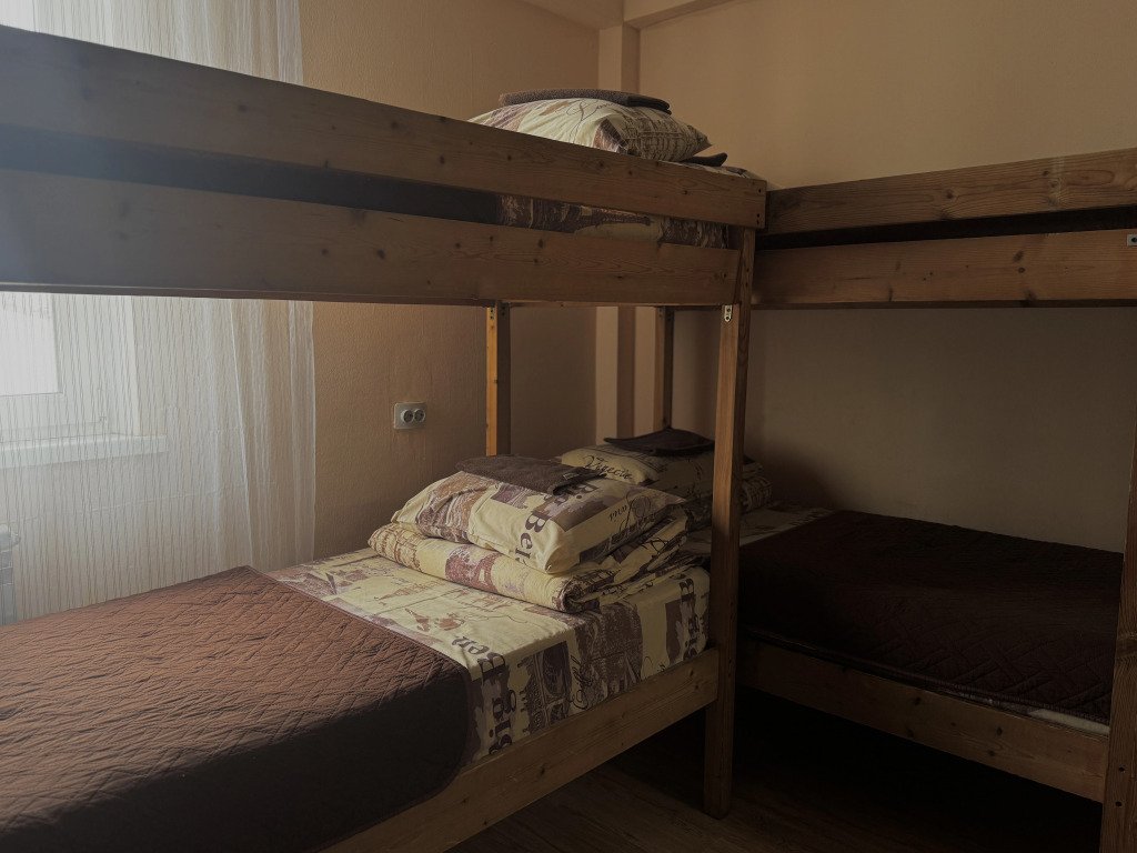 Кровать в общем номере с видом на город