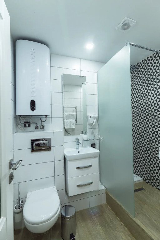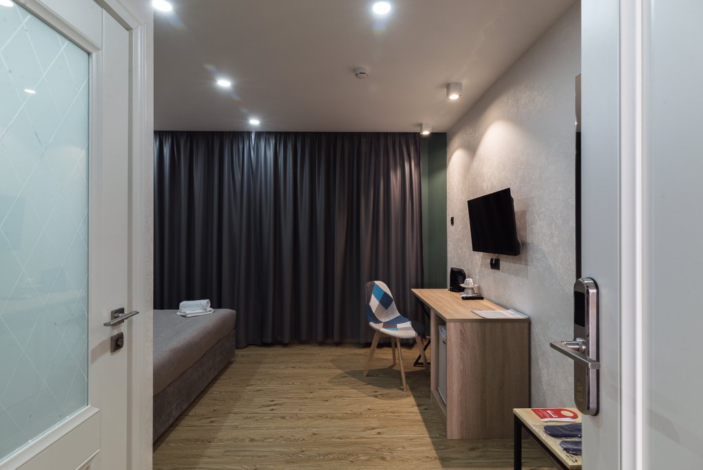 В номере вас будут ждать телевизор и тапочки. Оснащение зависит от выбранной категории номера.