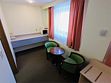 О номере: • уютный однокомнатный номер площадью 16 м 2 с кроватью 1,00х2,05м; • электронный замок, индивидуальный электронный сейф; • спутниковое телевидение, телефон, выход в Интернет; • тепло-вентиляционная система, кондиционирование; • холодильник, электрический чайник, набор посуды; • ванная комната с феном, телефоном, набором полотенец, халатом-кимоно, тапочками и набором туалетных принадлежностей; • принадлежности для чистки одежды и обуви.Услуги и удобства