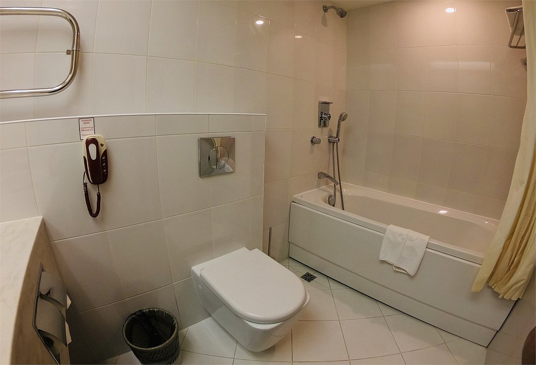 В люксе большим плюсом было наличие 2-х комнат с 2-мя телевизорами. В номере есть всё для комфортного проживания: чайник, микроволновка, 2 бутылки воды по1,5 литра (ежедневно), холодильник (не маленький), сейф, много шкафов и вешалок, чистые полотенца и постельное бельё, мыло, шампунь гель для душа, тапочки, халаты. Бесплатный вайфай. По нашему запросу на ресепшене выдали комплекты для чистки зубов. Не хватило чайных/кофейных наборов (пришлось в магазине самим покупать). И подушки - очень высокие и тугие, не каждая шея такое выдержит. Брали подушки диванные, обворачивали полотенцем и спали на них.