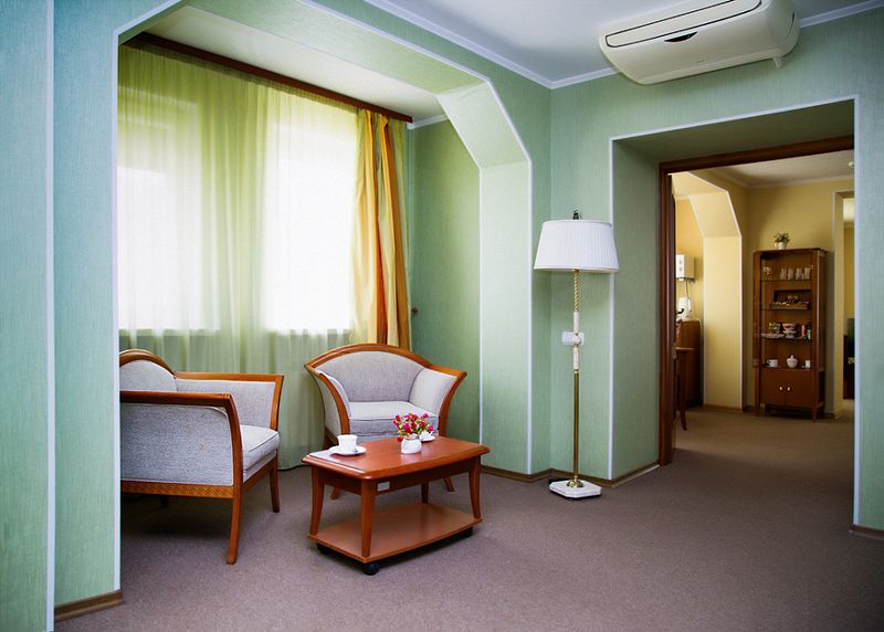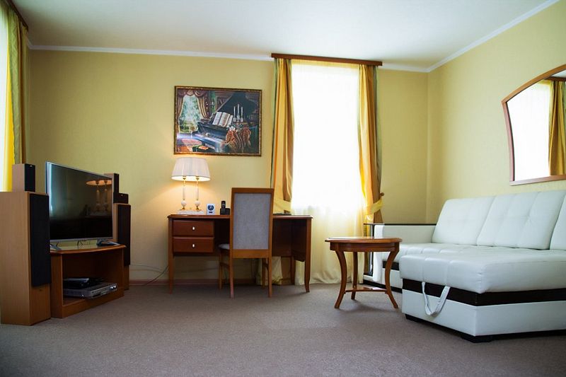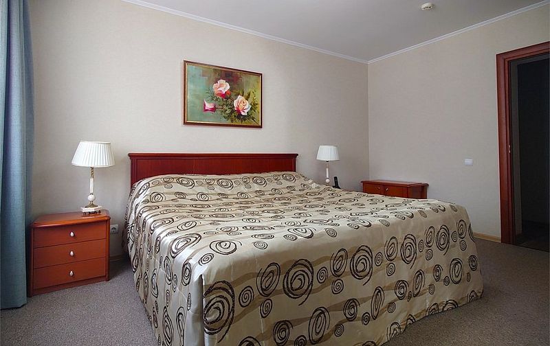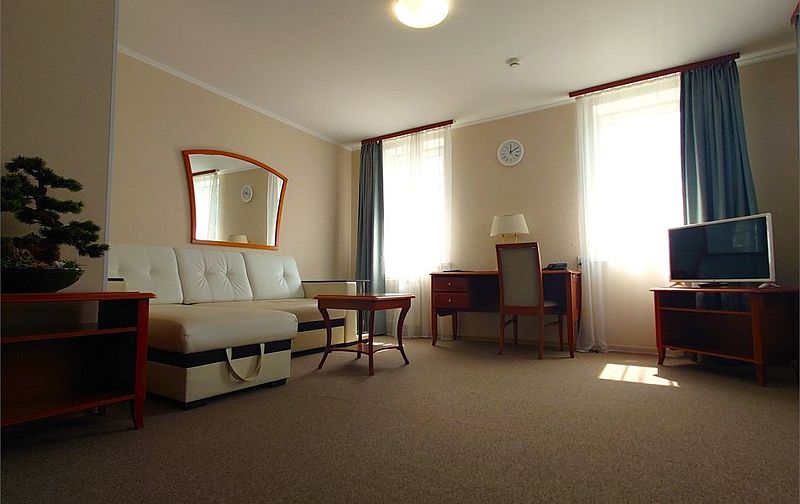 Меблированные в классическом стиле номера, подходя для семейного отдыха или деловых поездок, разделены на несколько комнат. В номере кровать 200*200, диван трансформирующийся в спальное место, мягкая мебель, письменный стол, два телевизора, микроволновая печь, маленький холодильник, чайник, столовые приборы и посуда, бутилированная вода, индивидуальный сейф. В номерах есть обеденная зона. В спальне ванная комната с джакузи, в коридоре дополнительная ванная комната с душевой кабиной. В ванных расширенный набор косметических принадлежностей, фен, халаты, тапочки. Дизайн, детали интерьера и некоторые характеристики каждого номера отличаются. Есть номер с лоджиями в гостиной и спальне, есть номер с просторной гардеробной. Стоимость номера указана на размещение одного или двух человек на основном спальном месте (кровати). Если Вы планируете использовать дополнительное спальное место (диван), добавьте данную услугу на этапе бронирования. Если Вы указали размещение троих человек, то тариф учитывает стоимость дополнительного места автоматически. Бесплатный Wi-Fi. Куллер с водой на этаже, гладильные принадлежности на этаже. Пожалуйста, обратите внимание, что при бронировании подтверждается категория номера и стоимость размещения. Выполнение особых пожеланий, таких как этаж и крыло расположения номера, ширина кроватей, вид из окна и другие характеристики, не гарантируется, особые пожелания учитываются по возможности, Вы можете выбрать их или указать в комментариях. На этапе бронирования можно ознакомиться со всеми доступными тарифами на выбранные даты и включить дополнительные услуги. Возможно размещение с питомцами за дополнительную плату. Стоимость зависит от размера животного. Для питомцев необходимо иметь с собой посуду и полотенца, для кошек – туалет. В случае размещения с питомцами, полную ответственность за животное перед гостиницей и другими гостями, несет владелец животного. Пожалуйста, не забудьте ознакомится с правилами отмены бронирований. Если у Вас остались вопросы, свяжитесь с нами по указанным контактам.Услуги и удобства