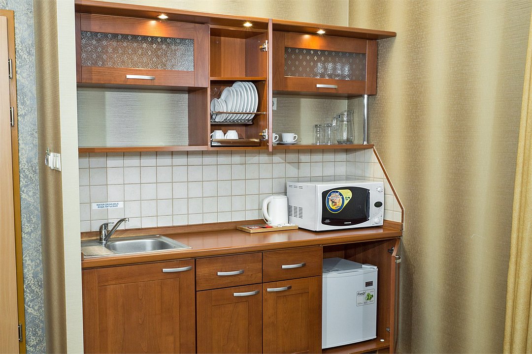 телевизор, кабельное телевидение, Wi-Fi, интернет, телефон, холодильник, фен, электронные замки, микроволновая печь, утюг, халаты, тапочки, гигиенические средства, балкон, кровать «Queen size», гладильная доска, диван, кресла, стулья, шкаф для одежды, журнальный столик, письменный стол, обеденный стол, багажная тумба, зеркало, пуфики, две комнаты, мини-бар, чайный набор, набор посуды, сейф, чайник, косметическое зеркало, питьевая вода, обеденная зона, гостиная зона, ковровое покрытие, кресло, китайский канал, стаканы, столовые приборы, раскладной диван, мини-холодильник, мини-кухня, москитная сетка, номер для некурящих, фанкойл, два раскладных креслаВ апартаментах