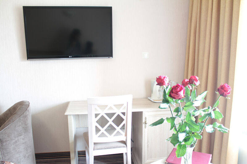 Светлые номера оформлены в классическом стиле. В распоряжении гостей телевизор, гостиный уголок и собственная ванная комната. Все номера выходят на балкон с видом на грушевый сад.