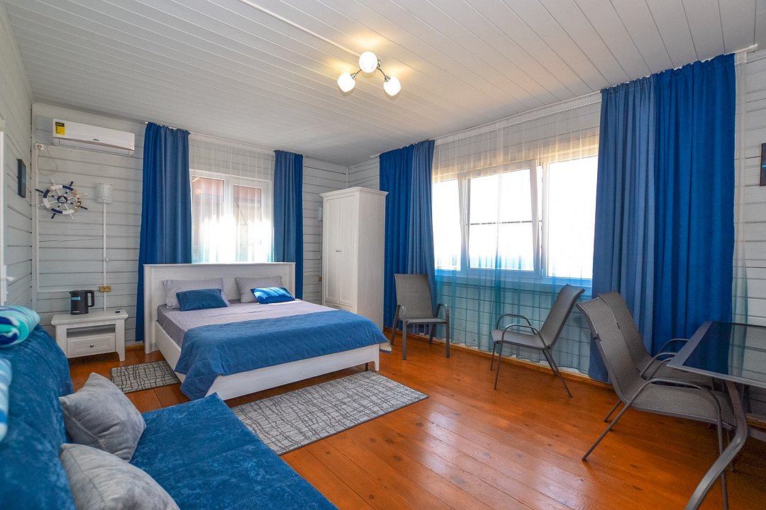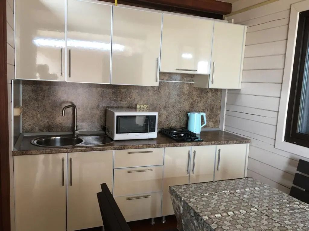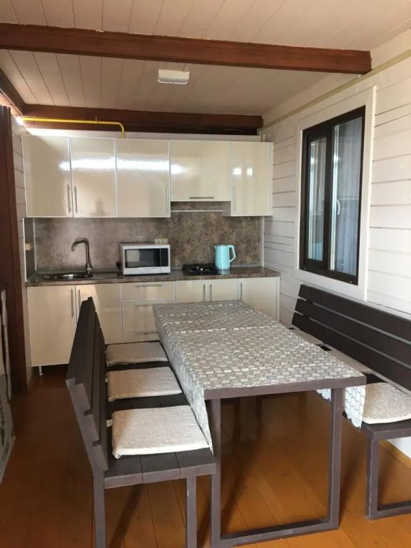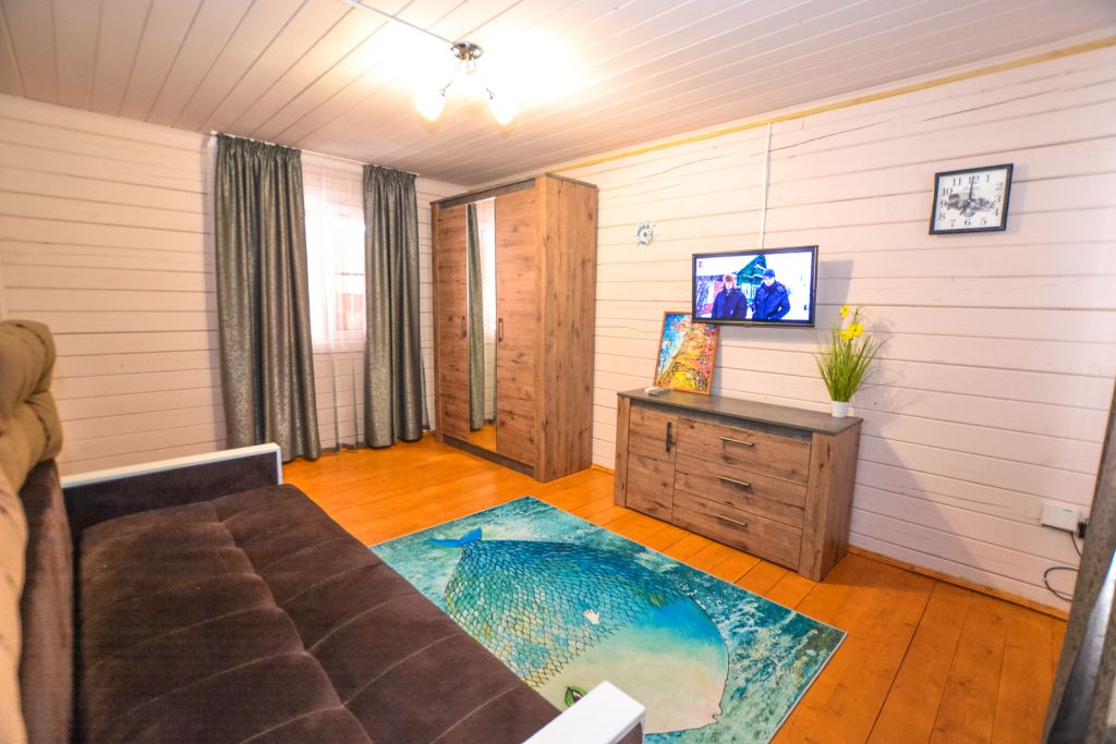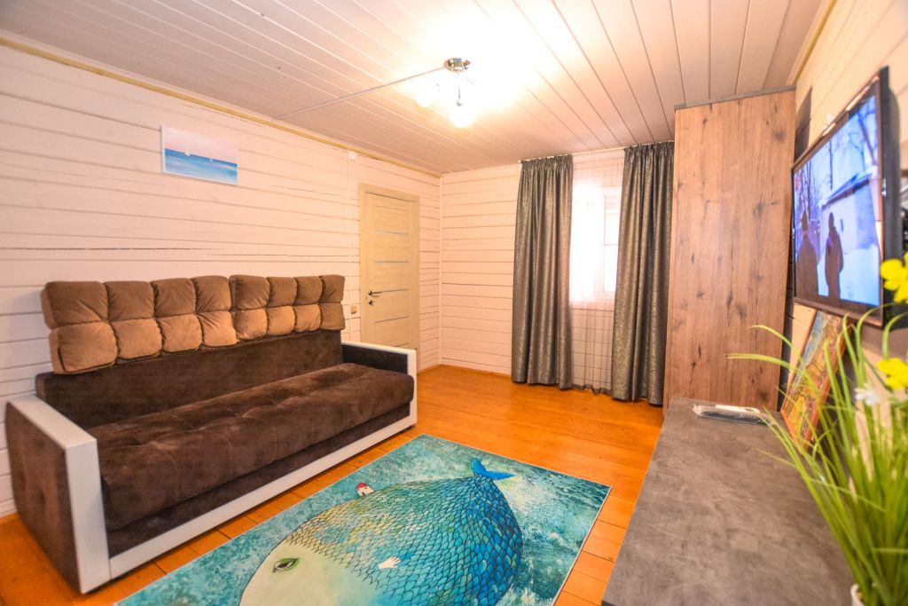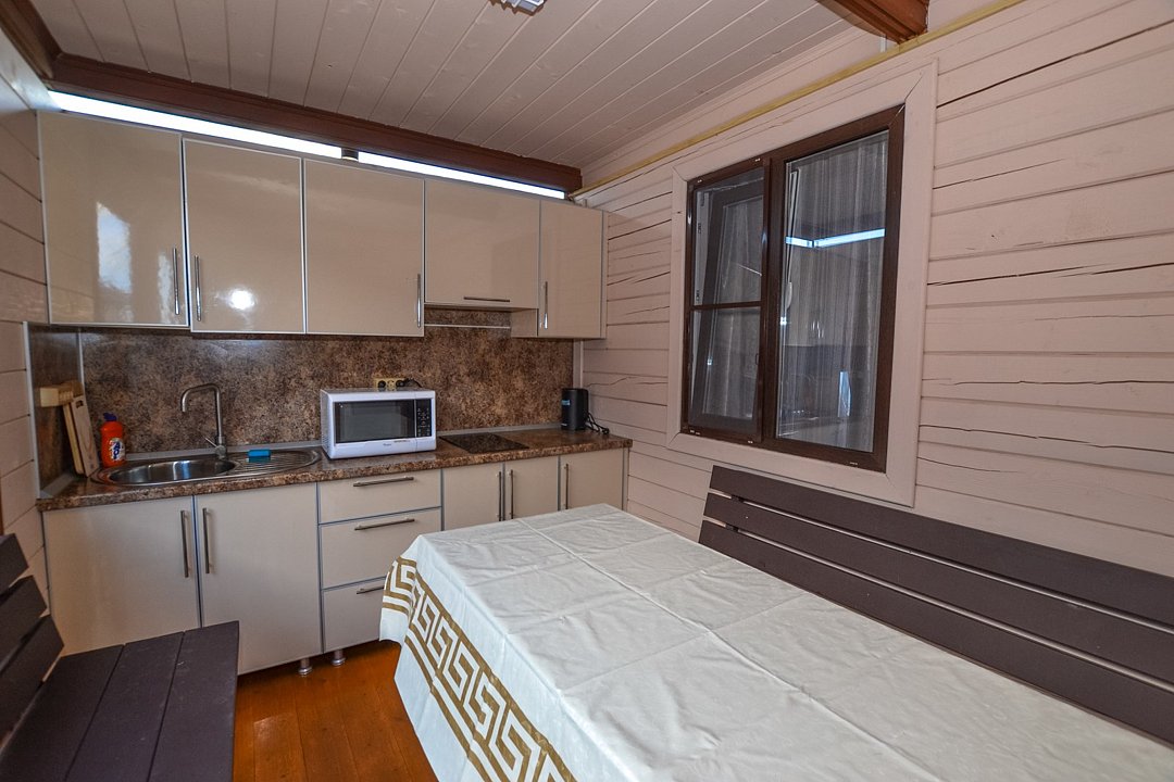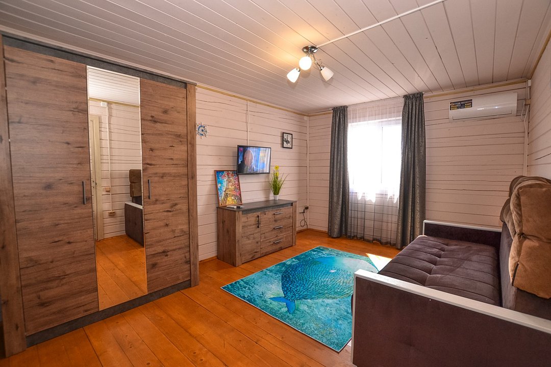 Экологически чистый дом на шесть человек-спальня с двухспальной кроватью,спальня с двумя односпальными кроватями,гостиная с диваном, кухня на веранде ,полностью оборудованная для готовки.Большой стол и лавки для семьи или дружной компании.Услуги и удобства