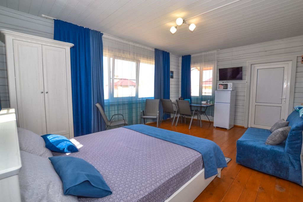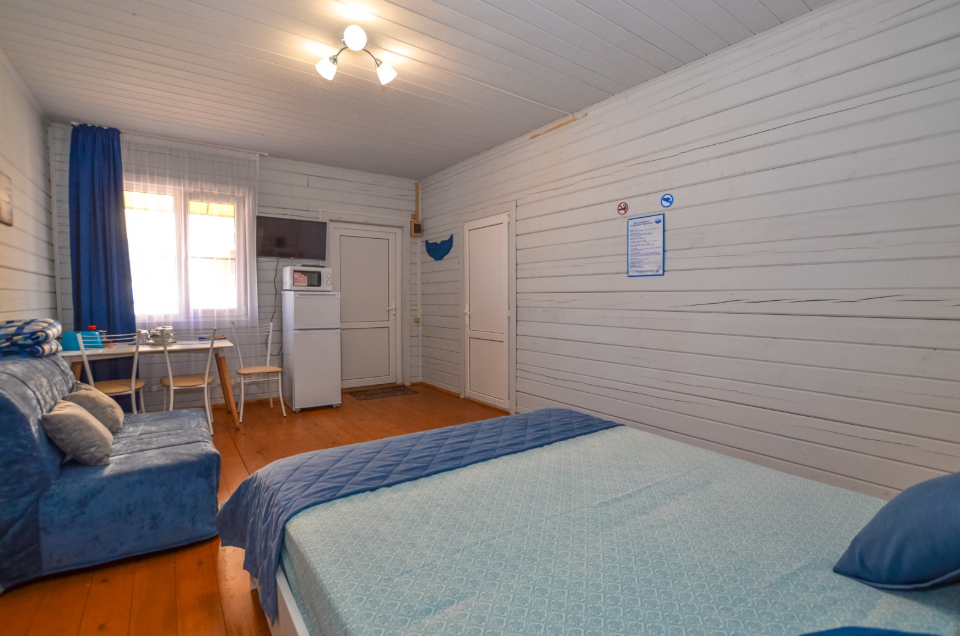 Просторный трехместный номер с санузлом,холодильником,телевизором,микроволновкой . Кухня общая на три номера.Услуги и удобства