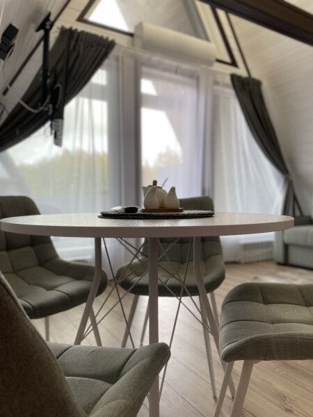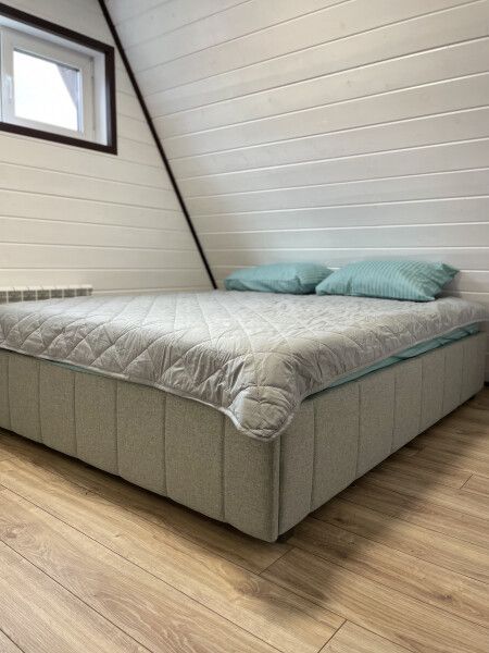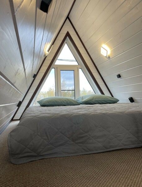 Для размещения гостей подготовлены домики в стиле А-фрейм оснащены всем необходимым для комфортного проживания: 2 большие двуспальные кровати, кухонная зона с мойкой и электрической плитой, холодильник, микроволновая печь, ванная комната с душевой кабиной, Wi-Fi, 2 телевизора. Имеется вся необходимая посуда, также предоставляется решетка для гриля и шампуры. Летом домики охлаждаются кондиционером, зимой отапливаются. Каждый дом расположен на собственном огороженном участке, где располагается Сибирский банный чан на дровах, мангал с печью для казана, мойка и большая беседка. На веранде вас ждёт маленький столик.