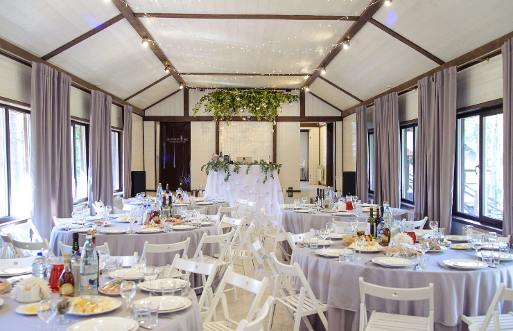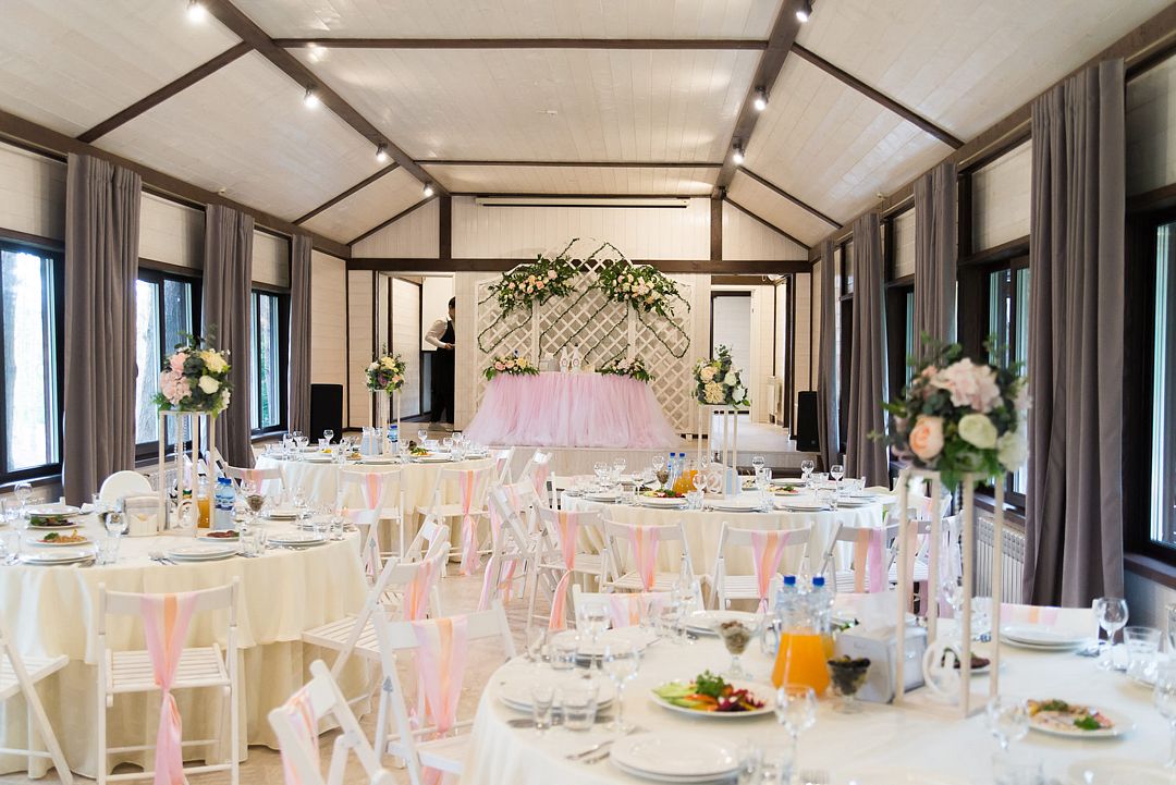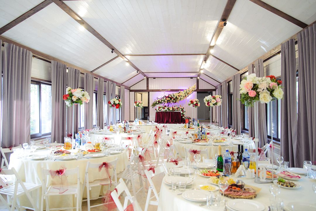 Наполненное светом пространство в современном стиле с лаконичным светлым оформлением, станет идеальным выбором для проведения любого мероприятия. Любой декор вашей свадьбы будет отлично гармонировать с интерьером. Все гости размещаются за удобными, круглыми столами, что делает комфортным их застолье и участие в развлекательной программе.