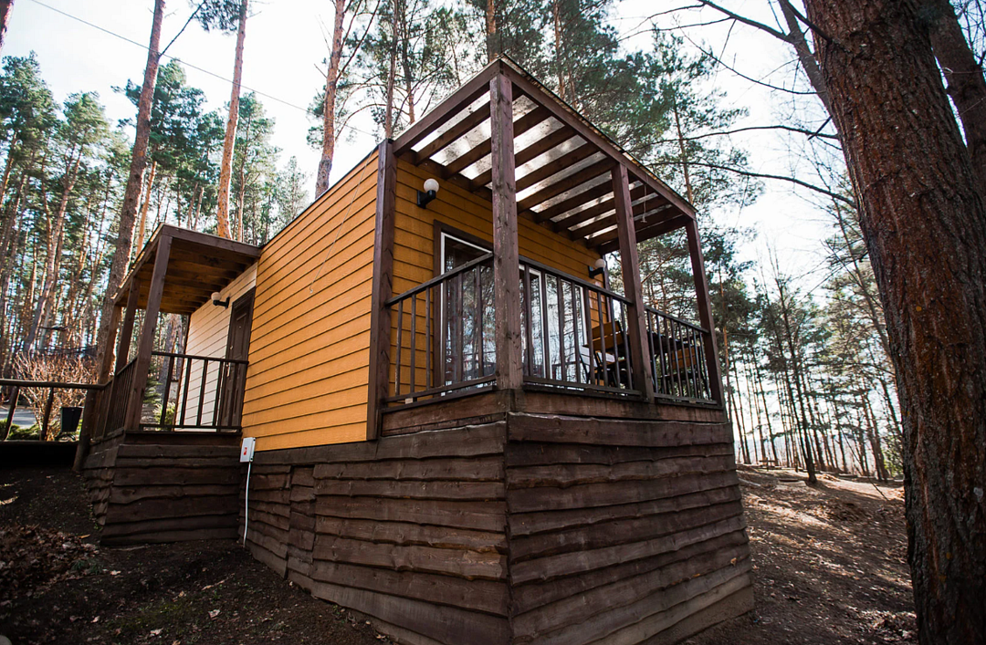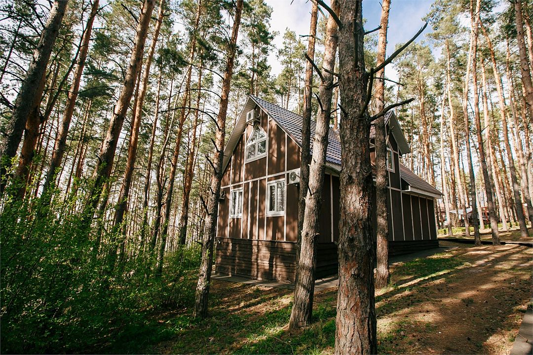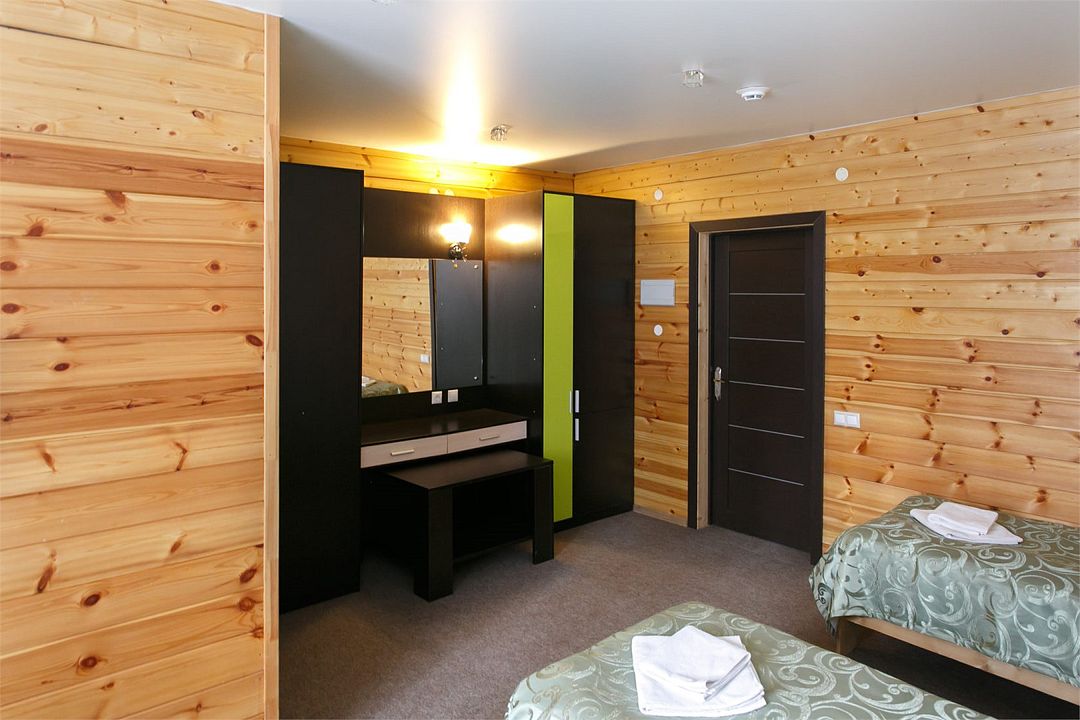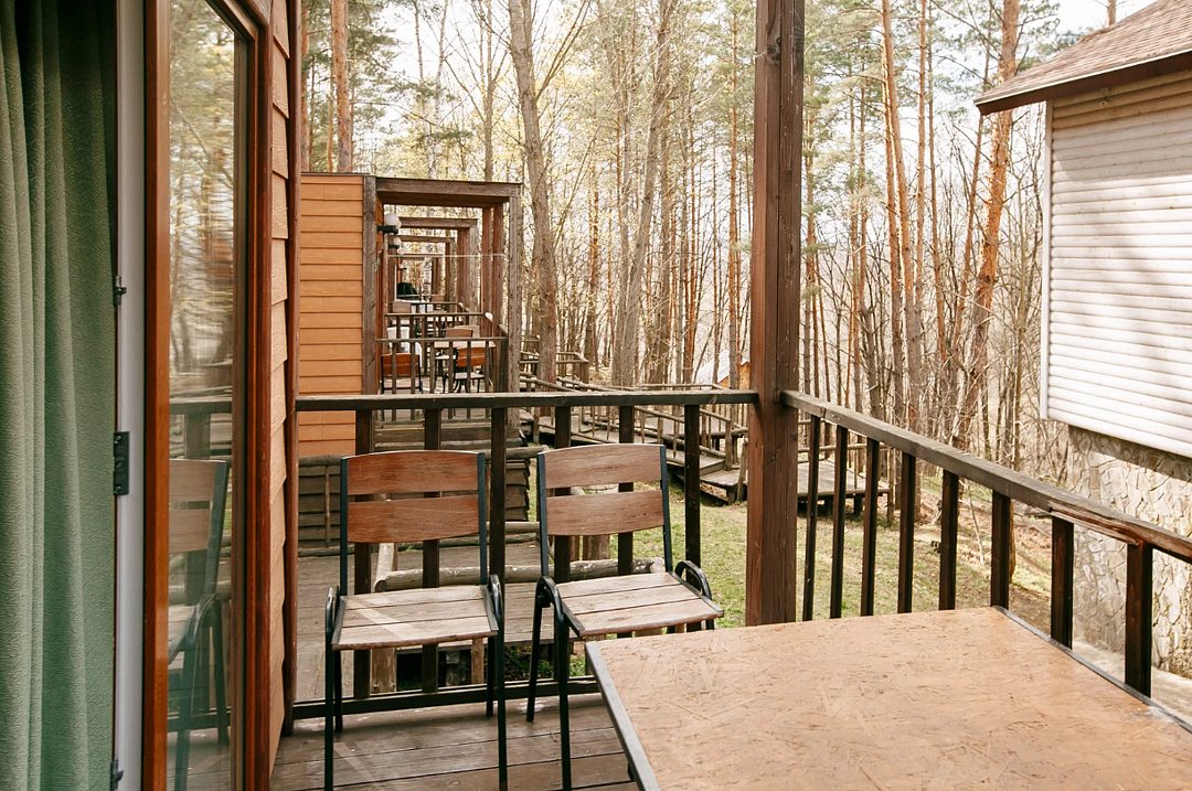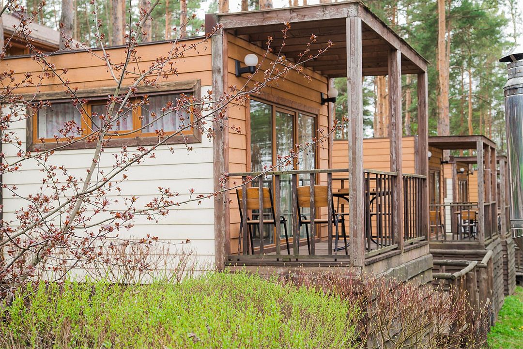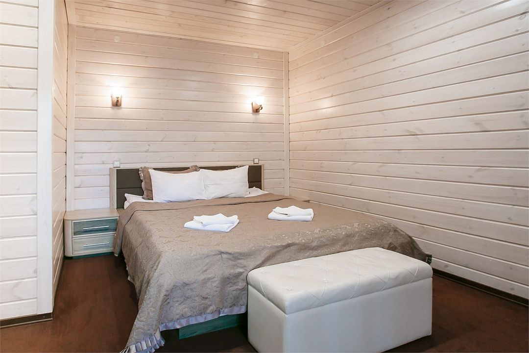 Отлично подойдёт для отдыха большой семьи и компании друзей. Также это хороший вариант для тех, кто ценит не только комфорт, но и эстетику. Номера, отделанные натуральным деревом, погружают гостя в атмосферу спокойствия и комфорта, а выход на общую веранду позволяет насладиться сосновым бором в полной мере.