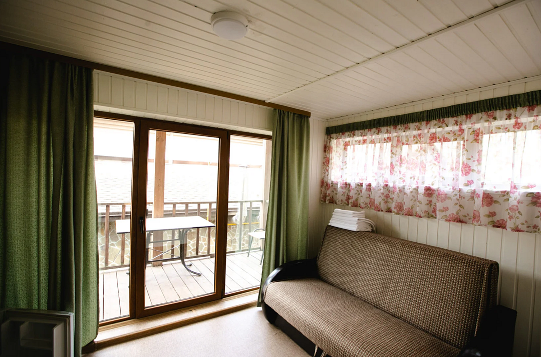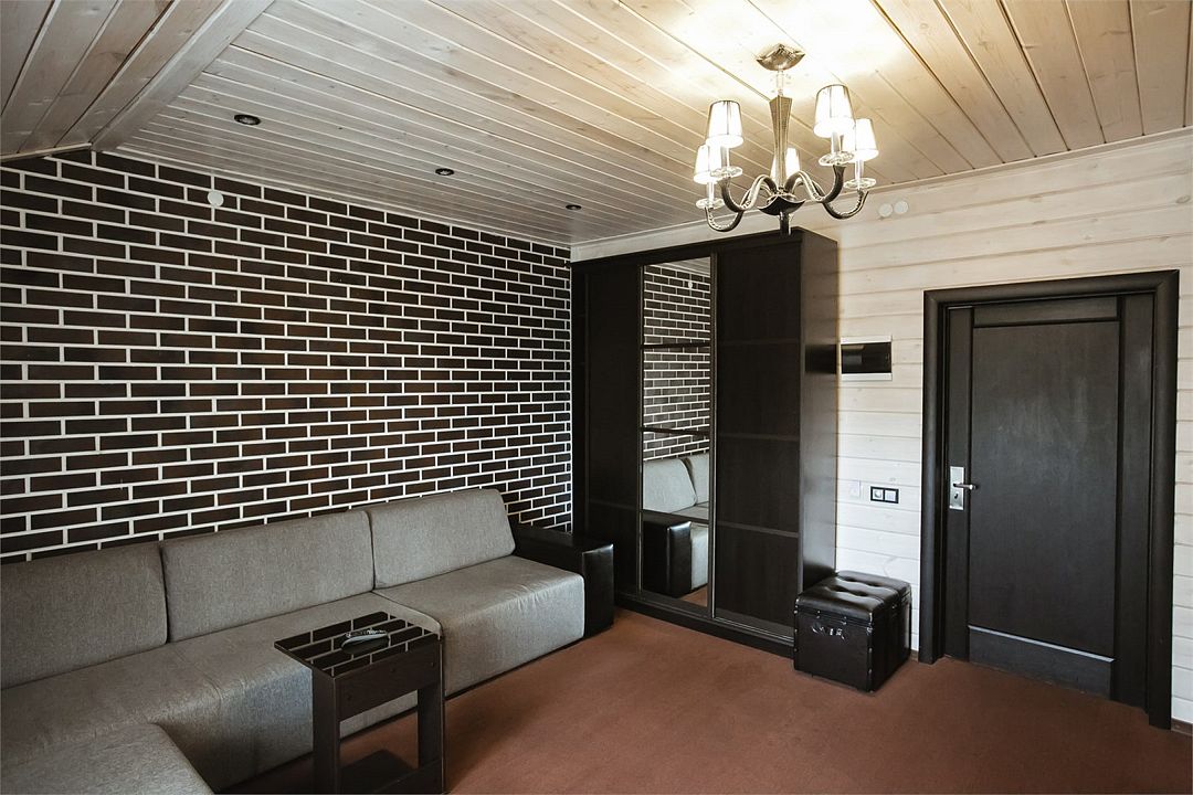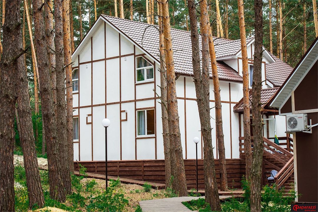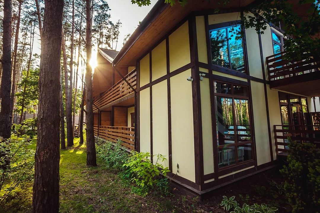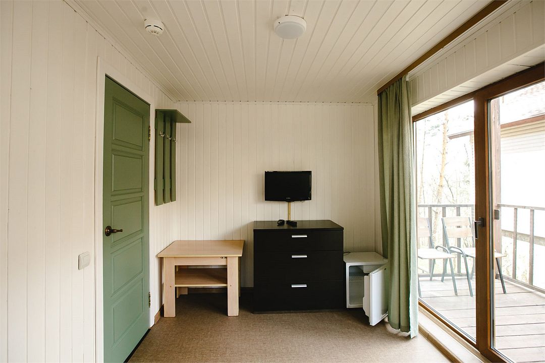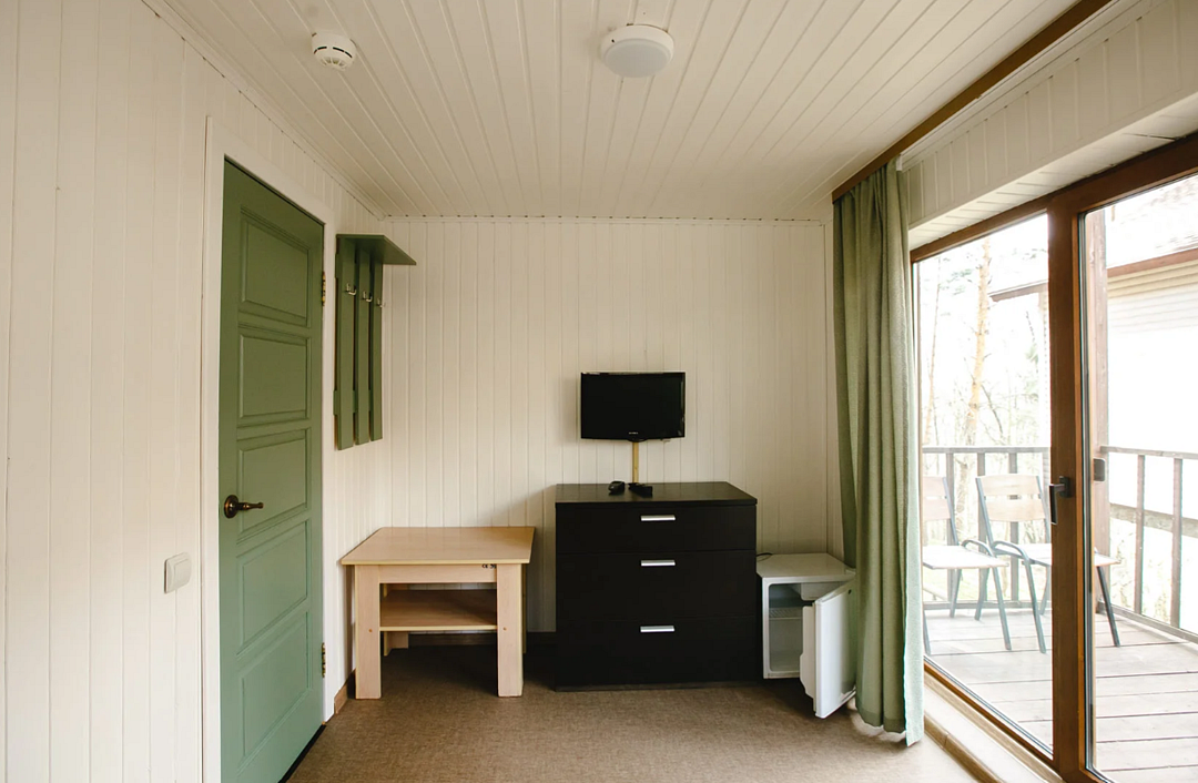 Отлично подойдёт для отдыха большой семьи и компании друзей. Также это хороший вариант для тех, кто ценит не только комфорт, но и эстетику. Номера, отделанные натуральным деревом, погружают гостя в атмосферу спокойствия и комфорта, а выход на общую веранду позволяет насладиться сосновым бором в полной мере.