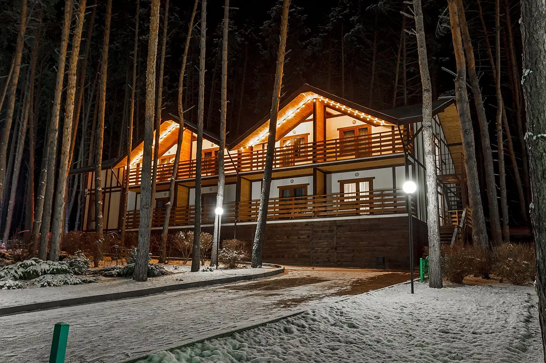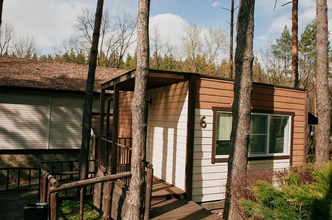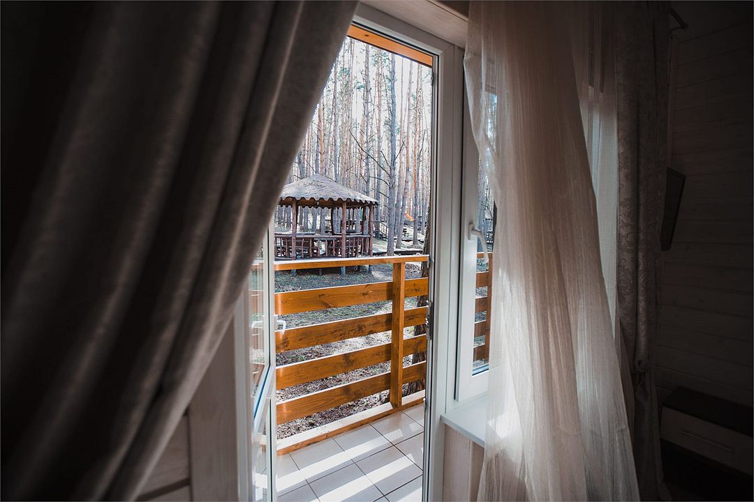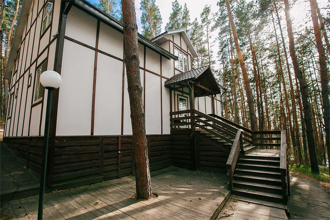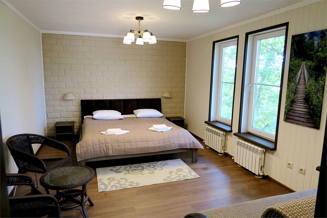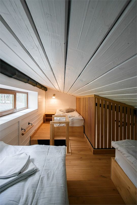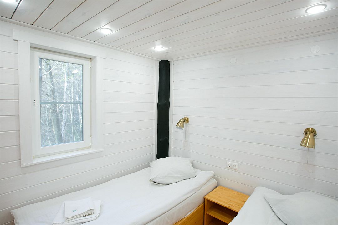 Отлично подойдёт для отдыха большой семьи и компании друзей. Также это хороший вариант для тех, кто ценит не только комфорт, но и эстетику. Номера, отделанные натуральным деревом, погружают гостя в атмосферу спокойствия и комфорта, а выход на общую веранду позволяет насладиться сосновым бором в полной мере.
