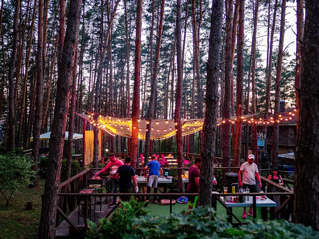Вы можете забронировать беседку или воспользоваться бесплатной мангальной зоной в порядке очереди.
