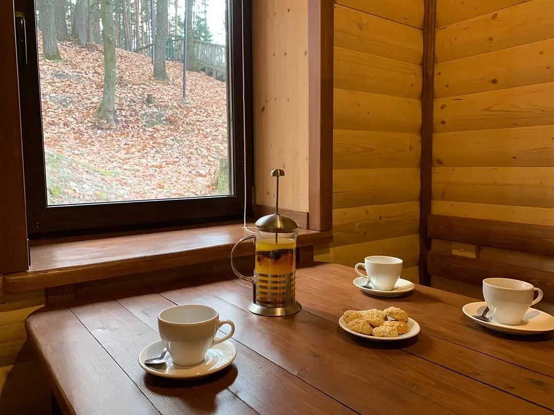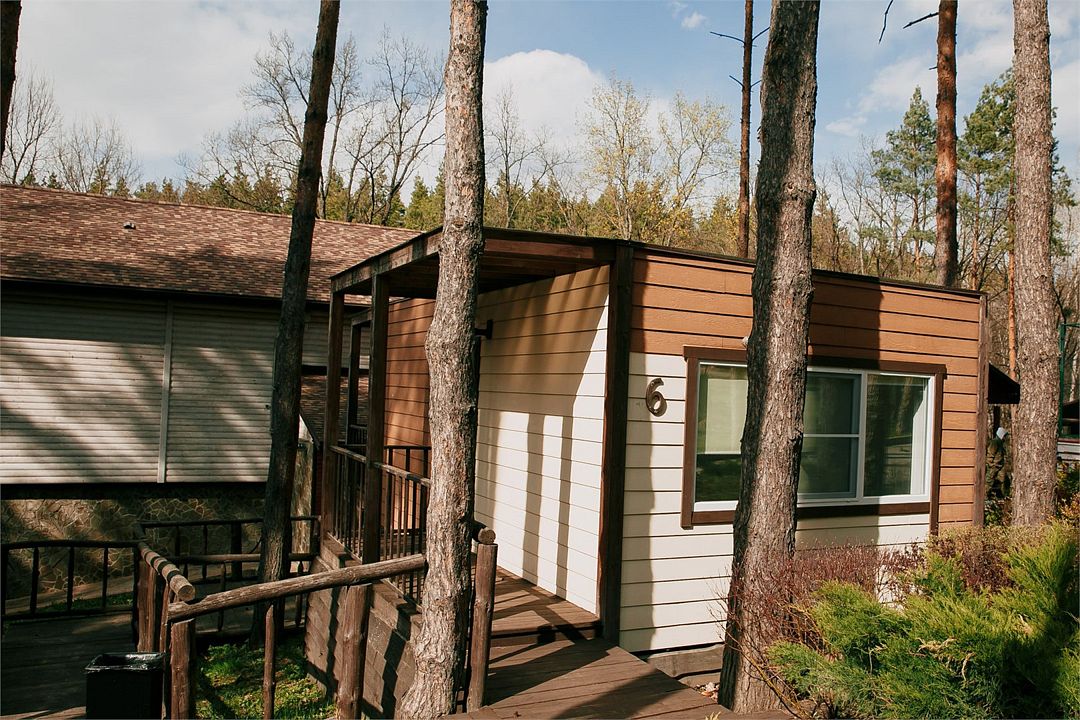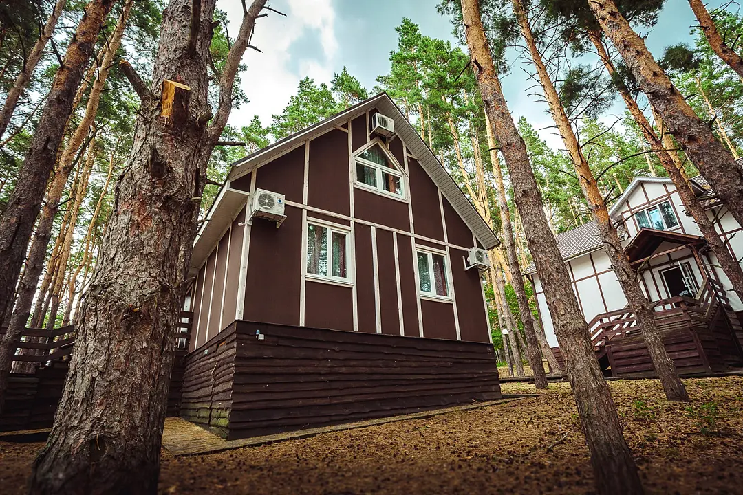 Уютные домики, построенные в окружении живописного соснового леса. Идеальное место для романтического и семейного отдыха. Разделены на две части с отдельными входами.