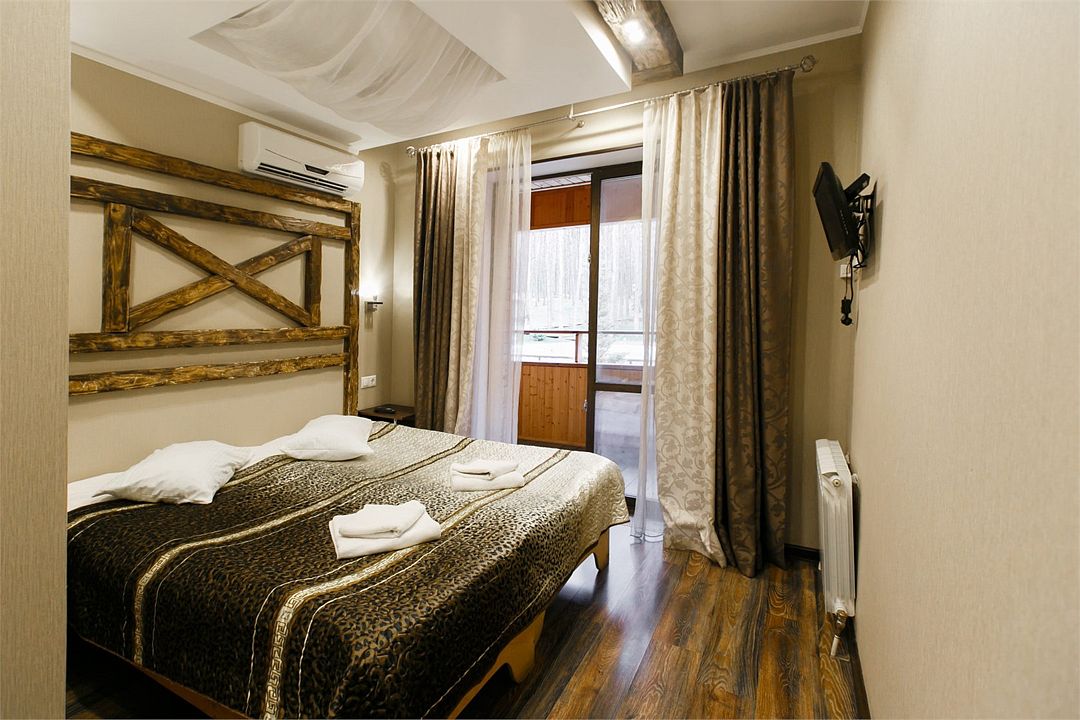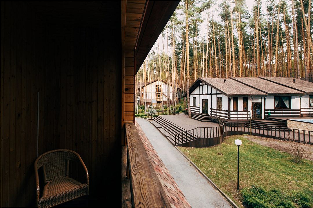 Светлые уютные номера в корпусе Шале — отличный выбор для каждого. В данной категории представлено 3 спальных места — двуспальная и односпальная кровать, а с балкона открывается потрясающий вид на лес и инфраструктуру загородного клуба.