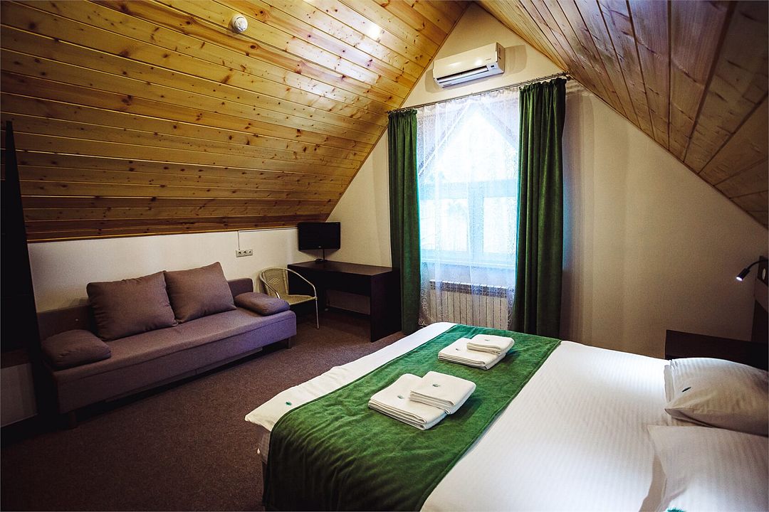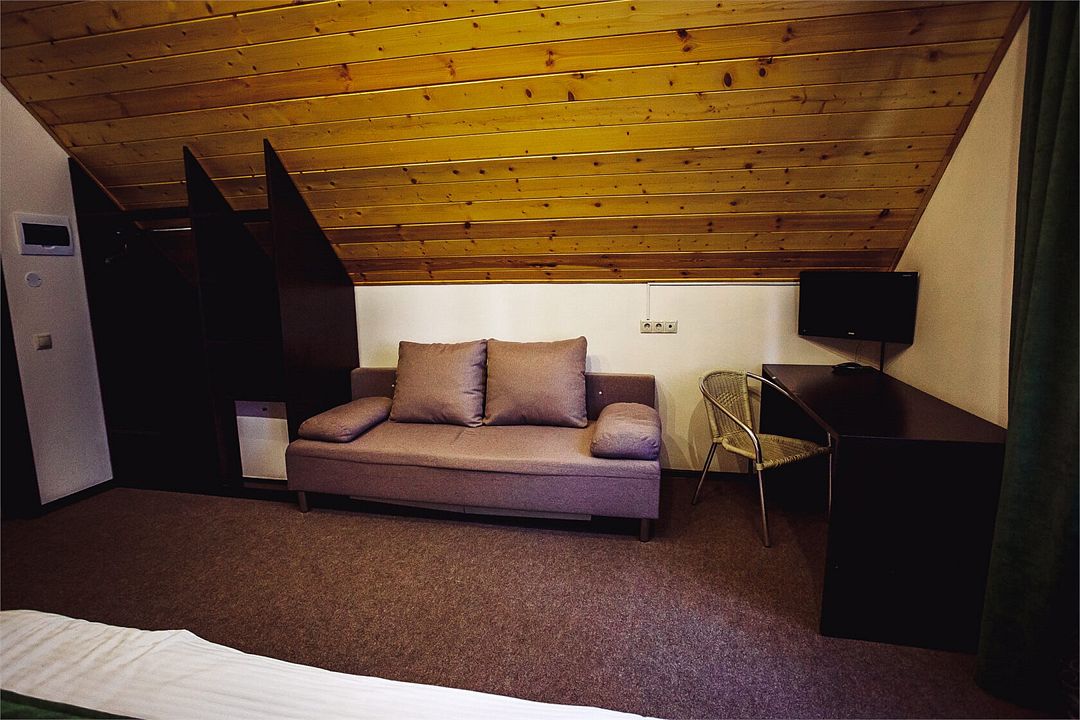 Просторный мансардный номер, расположенный на 2-ом этаже Гостевого корпуса, площадью 22 кв.м.
