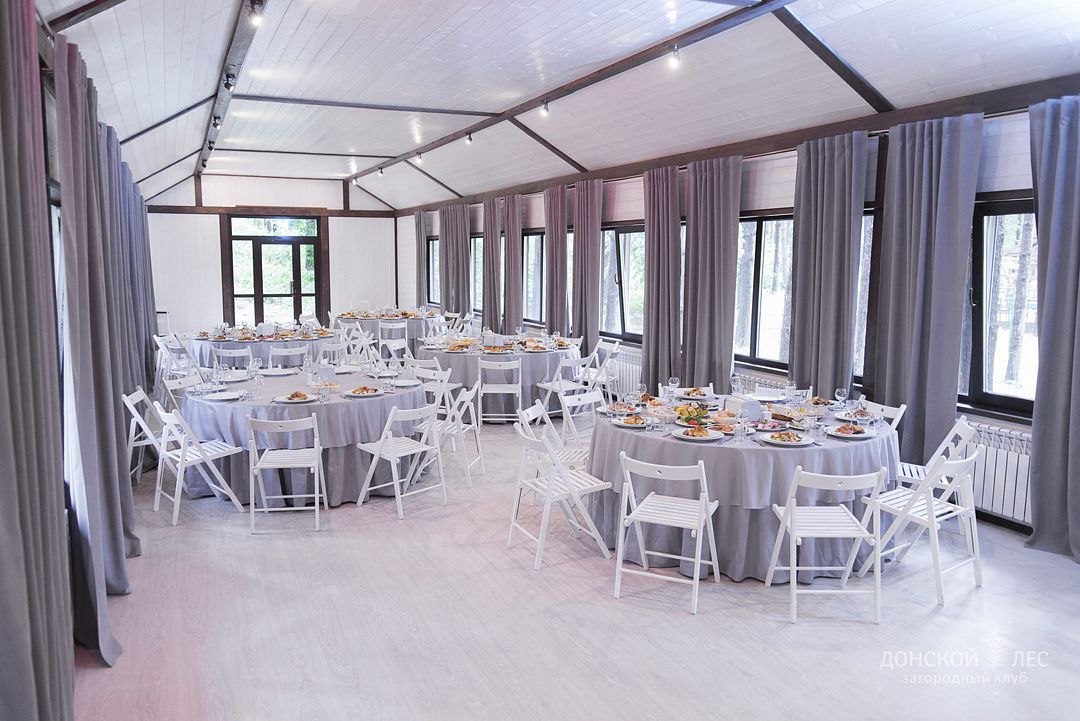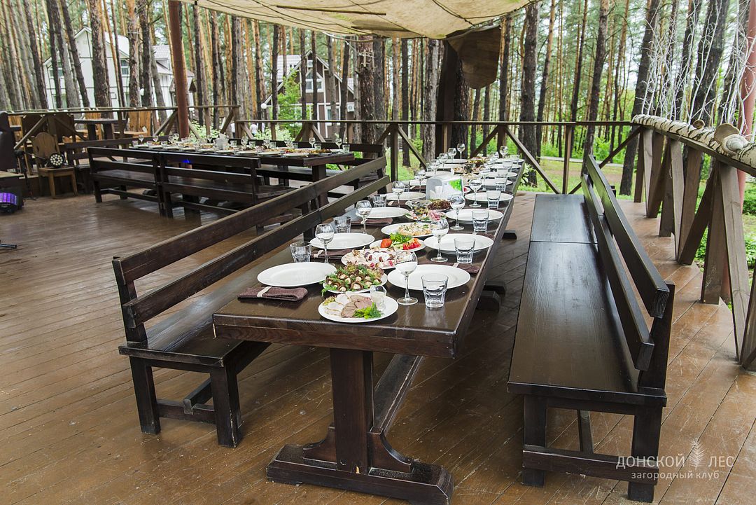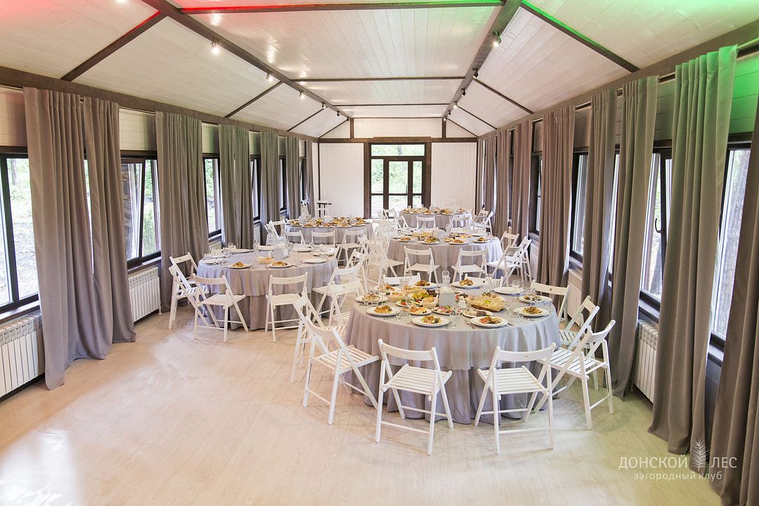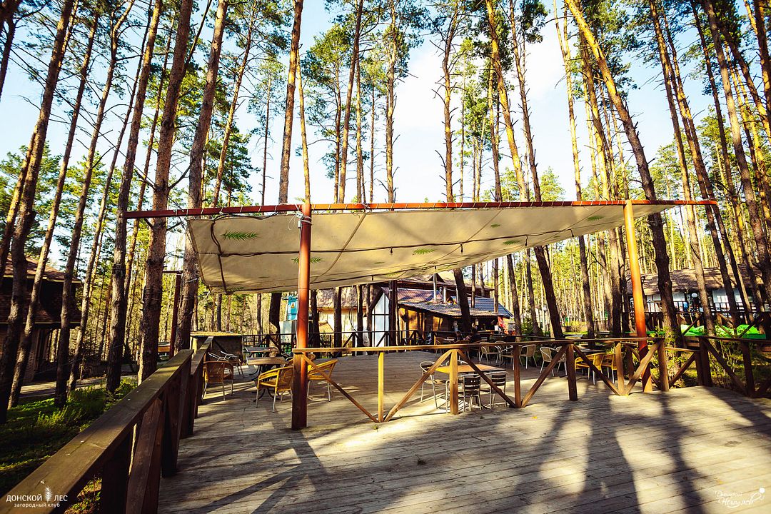 Тип меню: европейская кухня, русская кухняРесторан с панорамными окнами и открытой террасой расположился прямо в центре загородного клуба «Донской лес».