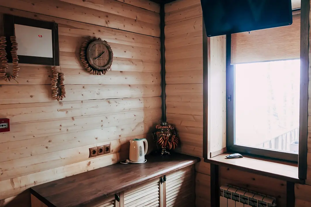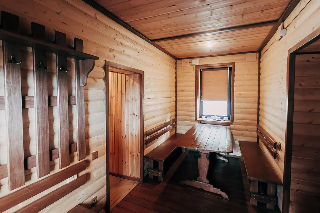 В зоне отдыха: стол, лавки, чайник, телевизор, фен. Вместимость до 8 человек. Аренда от 2-х часов.