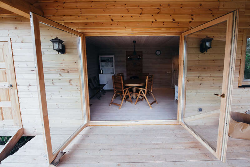 Если вам необходимо разместить 10-12 человек, то можно забронировать обе половины дома, в случае если левая половина свободна (Земляника и Гортензия).
