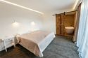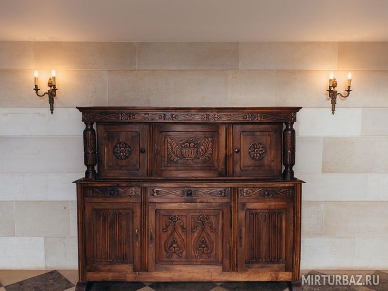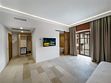 Левое крыло дома имеет отдельный вход с просторным коридором. В шикарно обставленной гостиной есть камин и обеденный стол. В номере также есть кухня с современным оборудованием.