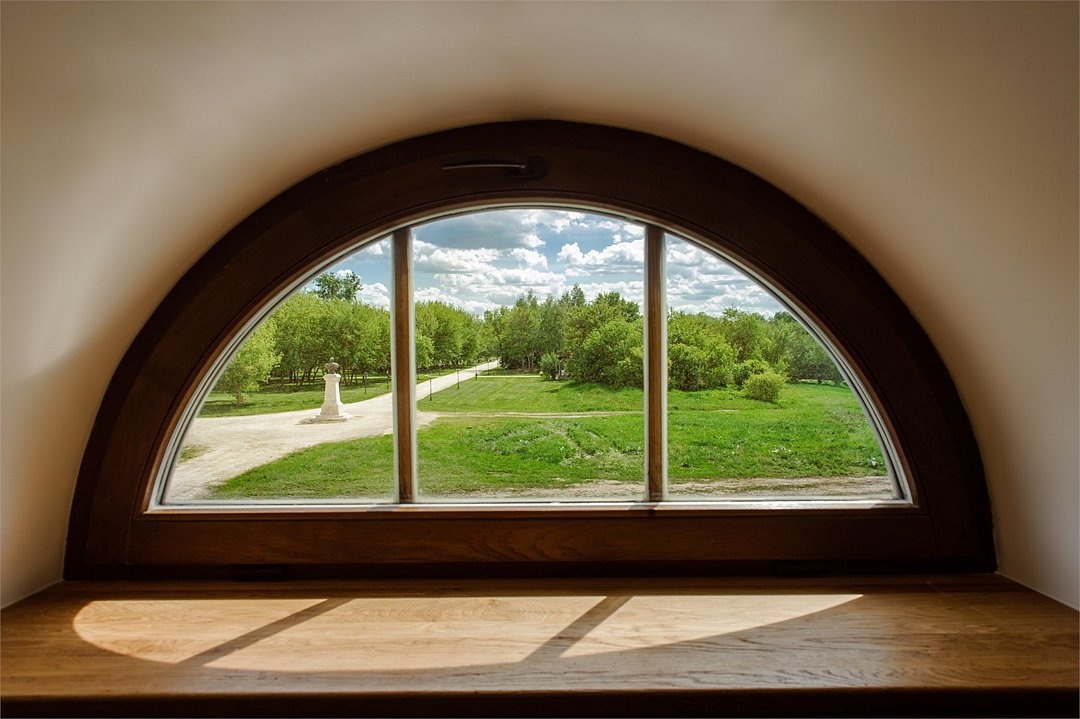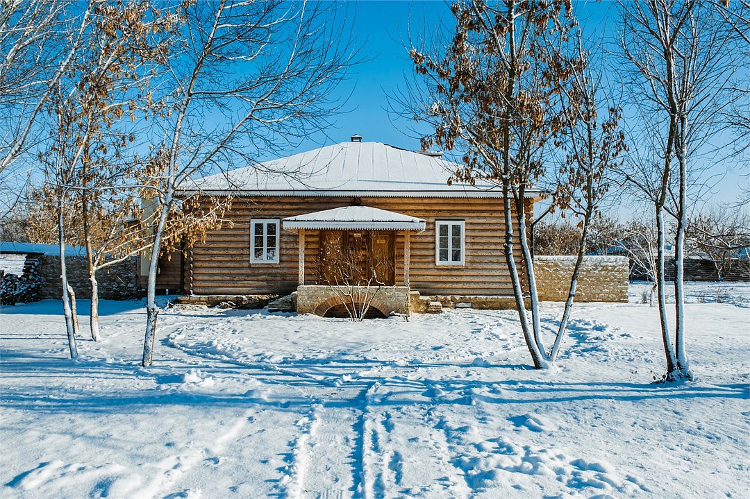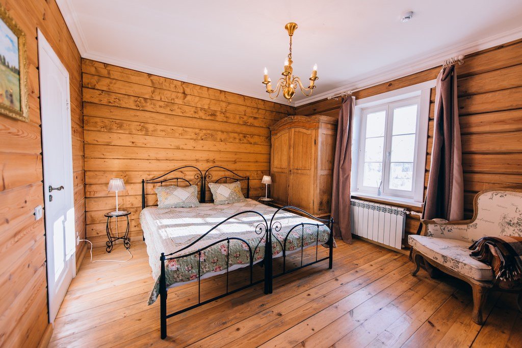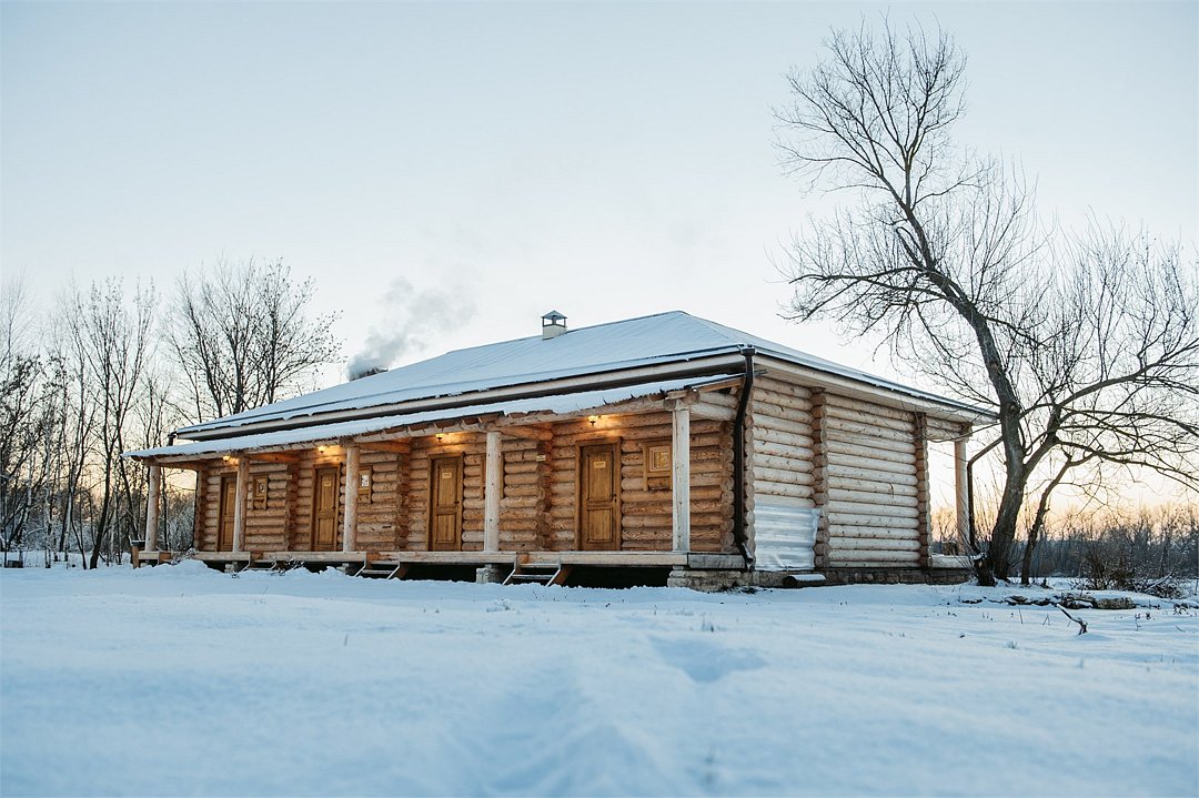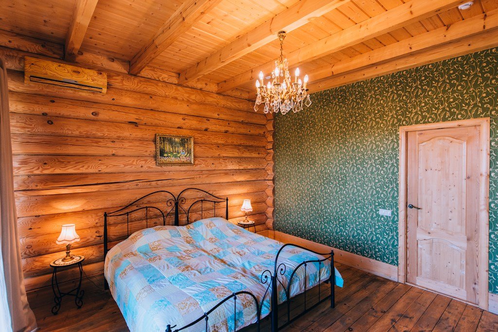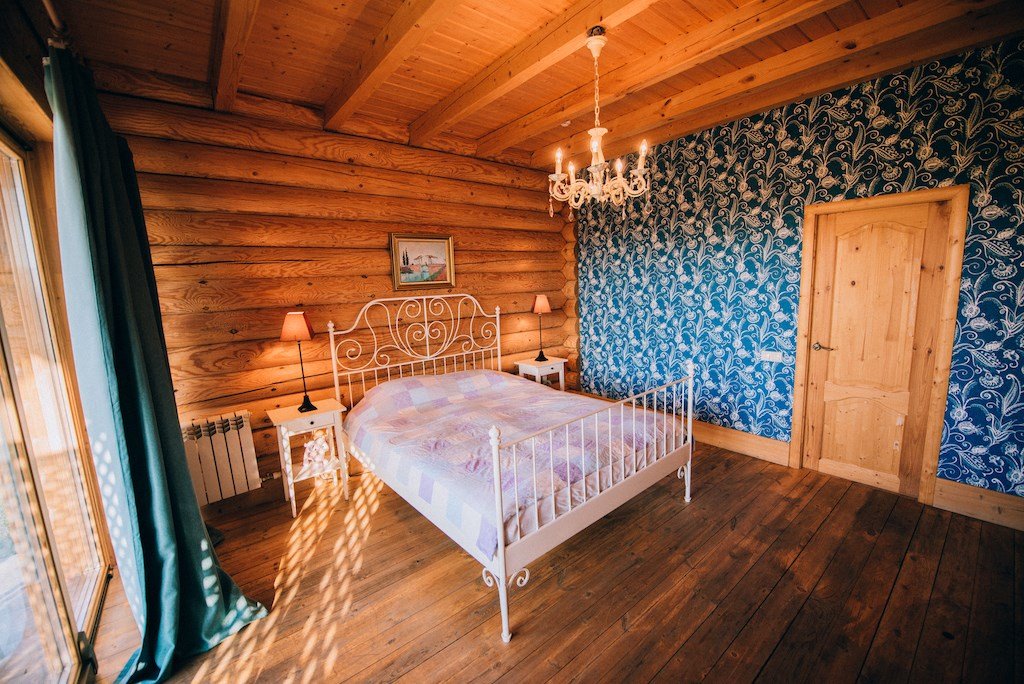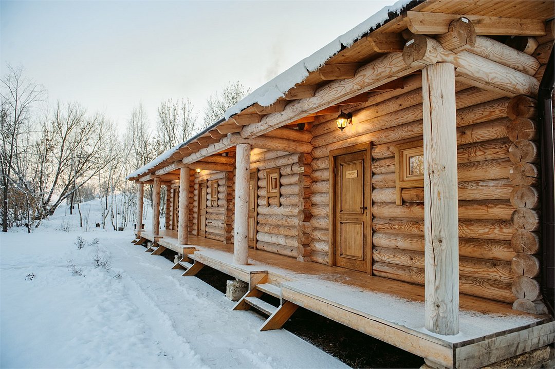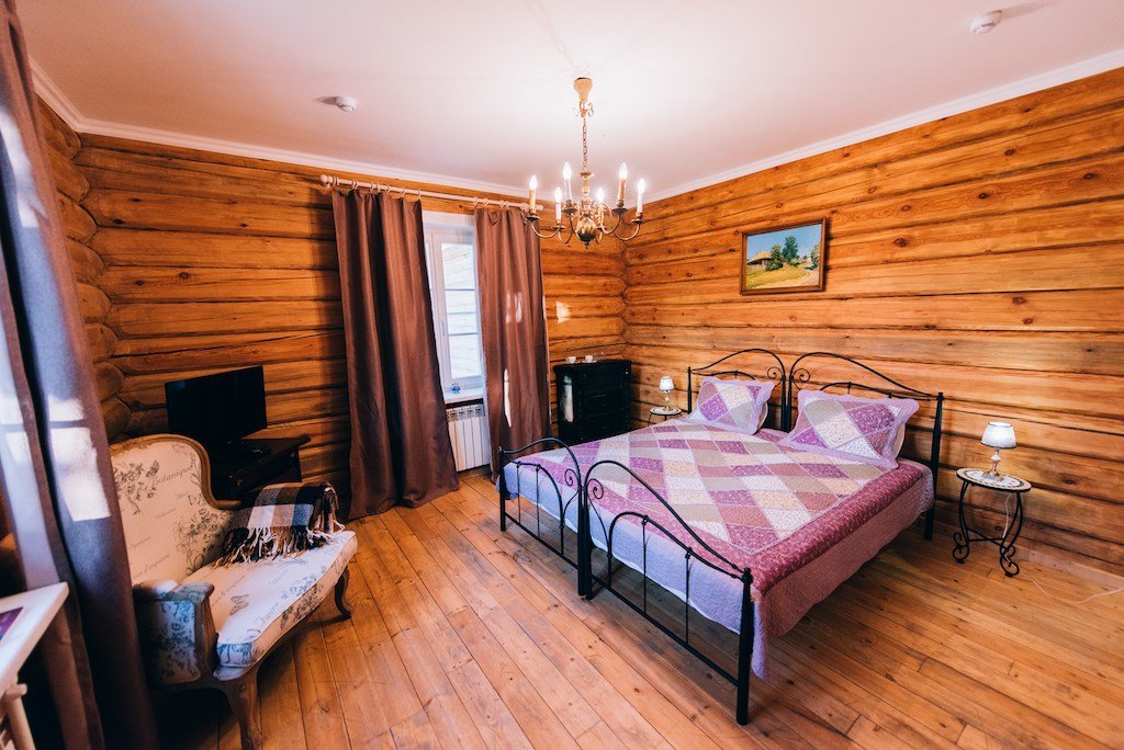 Номер с панорамными окнами в дворовой избе "Берёзки"