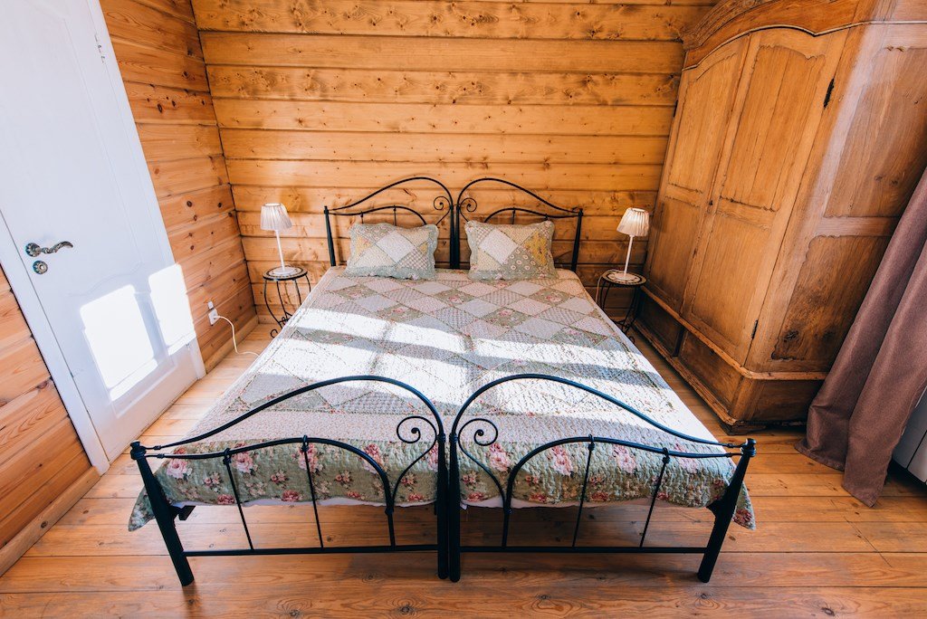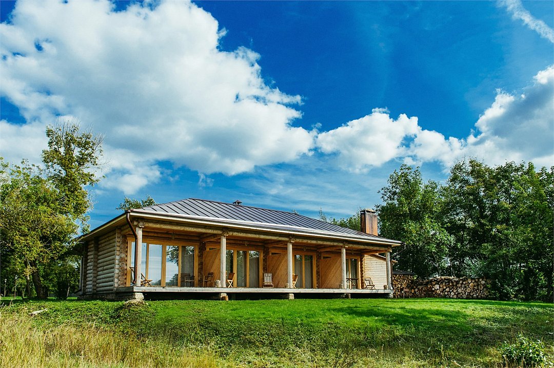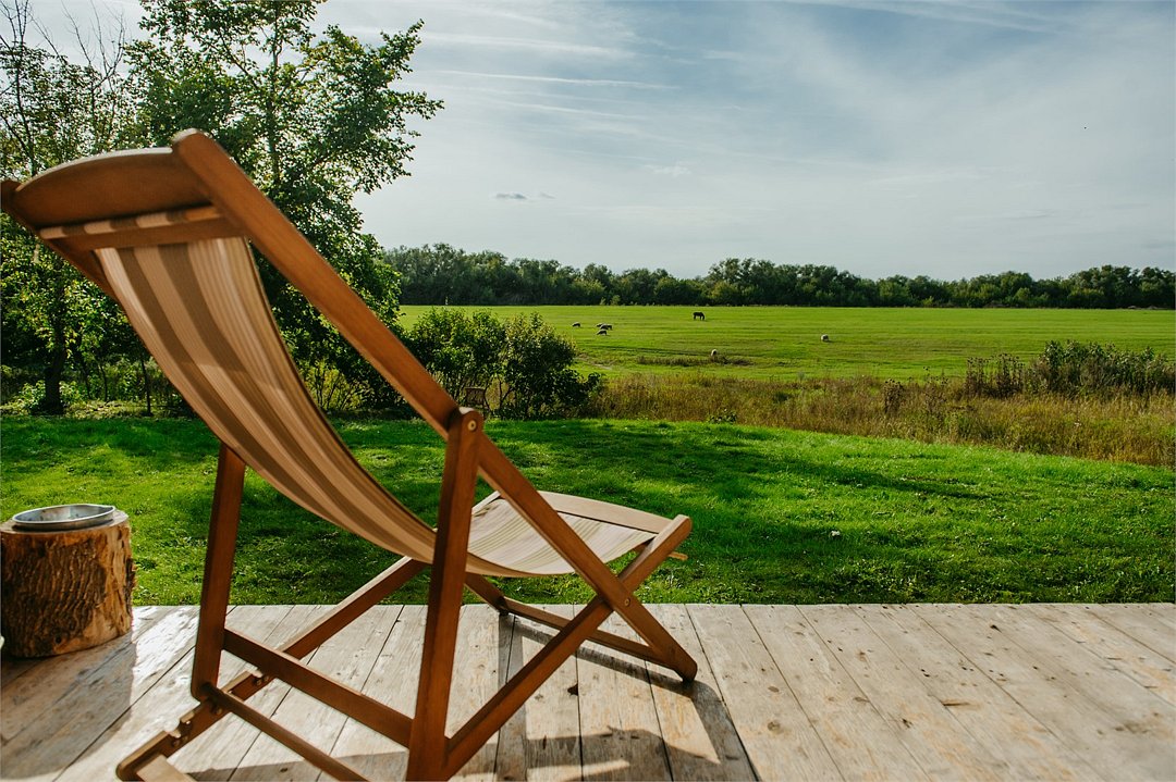 Вместимость номера до 3-х гостей (2 на основном месте + 1 на дополнительном месте за дополнительную плату). Дворовая изба "Березки" состоит из 4-х изолированных номеров, каждый с отдельным входом, собственной террасой и панорамными окнами от пола до потолка. Из номера открывается потрясающий вид на донские луга и великолепные закаты. Внутри единая двухспальная кровать.Услуги и удобства