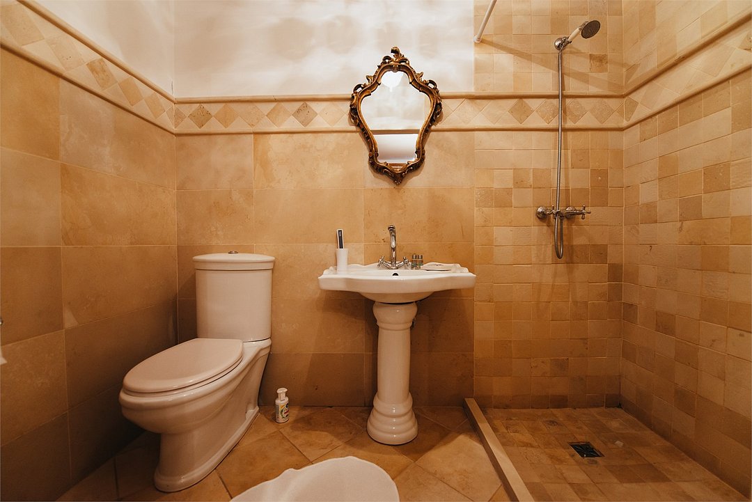 телевизор, Wi-Fi, холодильник, фен, плита для приготовления пищи, микроволновая печь, ванная комната, двуспальная кровать, стулья, обеденный стол, комод, эксклюзивная мебель, унитаз, обеденная зона, вид во двор, высокие потолки, четыре односпальные кровати, стаканы, кухонная утварь, столовые приборы, стул, туалет, мини-кухня, рабочий стол, антикварная мебельВ доме