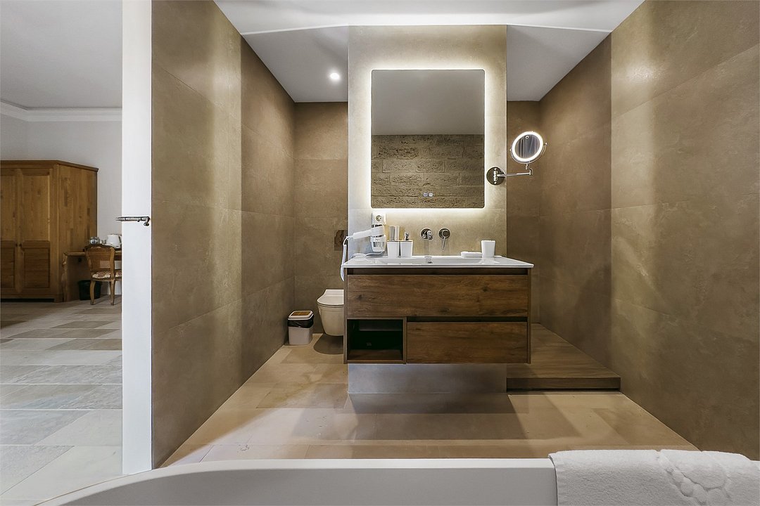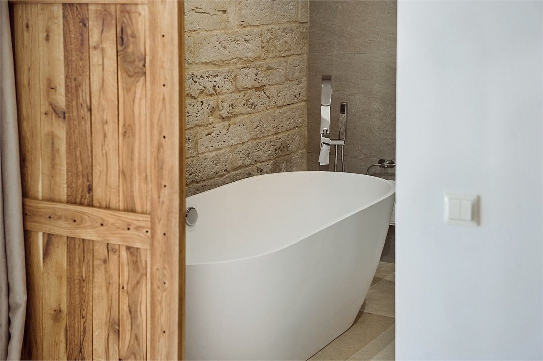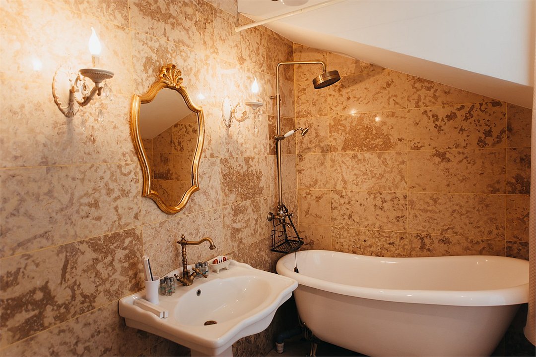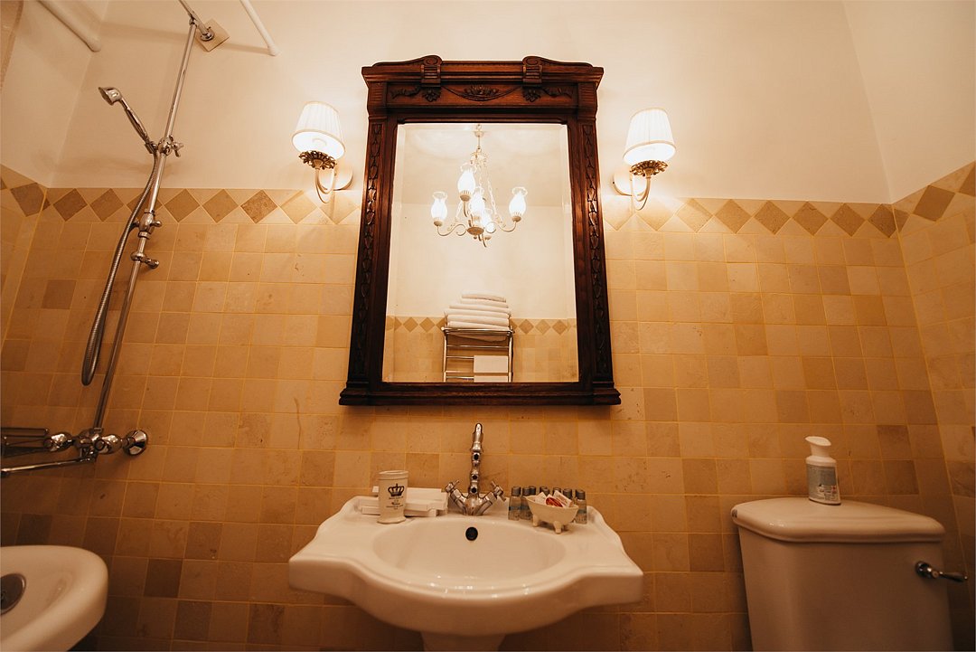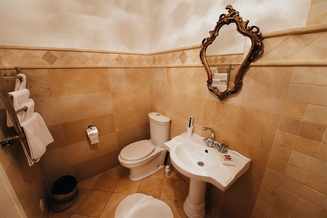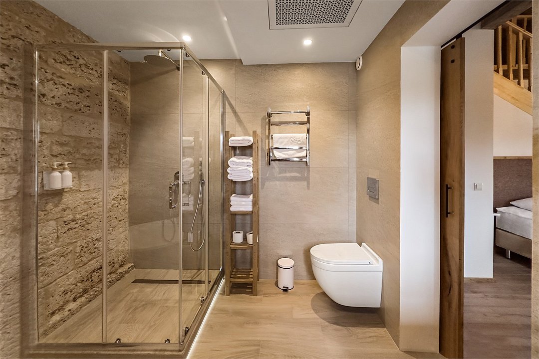 Вместимость номера до 6 гостей (двухспальная кровать 180сх200см в спальной + две односпальные кровати 90х200см во второй спальной + раскладной диван 140х200см в гостиной за дополнительную плату). Номер расположен в восстановленной крепости XIX века на втором этаже. Панорамное окно с видом во внутренний дворик и выходом на балкон. Размещение с домашними животными в номерах данной категории запрещено.Услуги и удобства