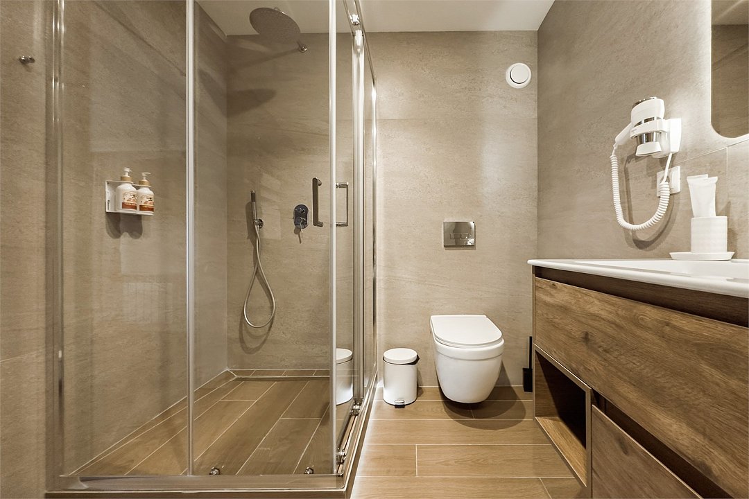 телевизор, Wi-Fi, кондиционер, душевая кабина, двуспальная кровать, багажная тумбаВ номере