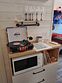 - кухня со всей техникой: холодильник, микроволновая печь, плита, тостер, чайник, посудомоечная машина, кофемашина, фильтр для воды, посуда, столовые приборы, чай, кофе, приправы;