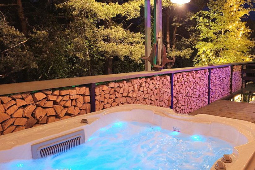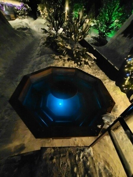 Рядом с каждым домом расположен собственный горячий банный чан, который находится под открытым небом. Его можно наполнить разными травами, чтобы создать атмосферу спокойствия и умиротворения. На свежем воздухе вы сможете насладиться моментом уединения или провести время с близкими, создавая незабываемые воспоминания на лоне природы.