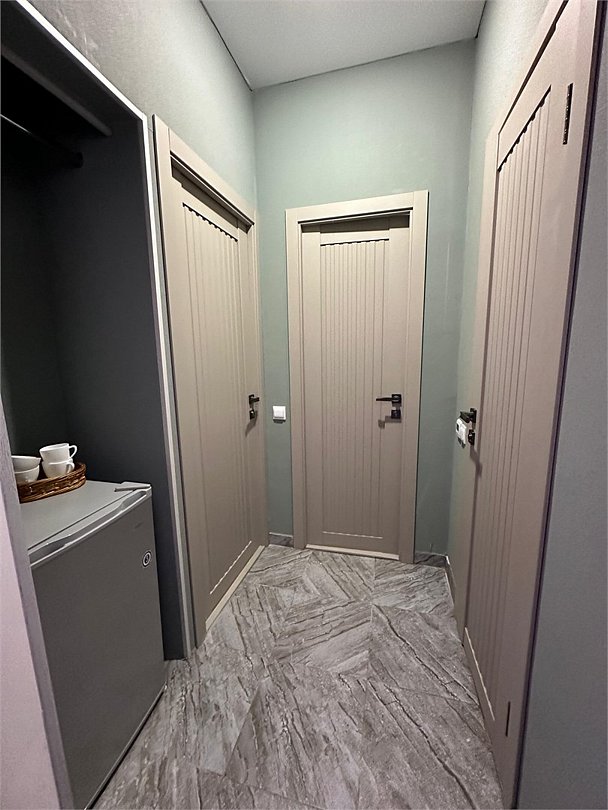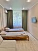 Кухонная зона со всем необходимым: холодильник, СВЧ-печь, эл. чайник, полный комплект посуды на 6 персон. Комфортный санузел: душевая кабина с гидромассажем и радио, унитаз, раковина, зеркало с подсветкой, тапочки, полотенца, умывальные принадлежности. Кондиционер.