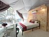 В доме: гостиная, большой телевизор (Smart-TV), лофт, кондиционер, кухонная зона: холодильник, электрочайник, СВЧ-печь, набор посуды на шесть персон, обеденный стол и стулья. Удобства: тропический душ, санузел, раковина, сауна в помещении, умывальные принадлежности, фен.