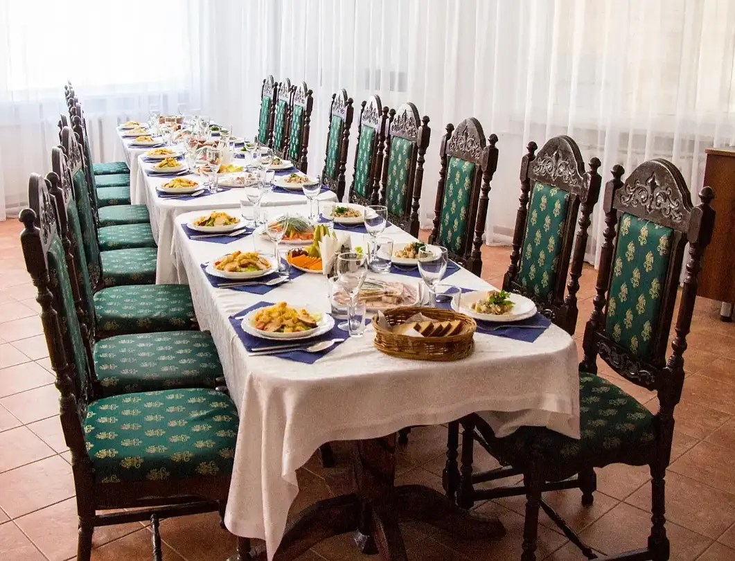 При заказе банкетного меню на сумму от 1500 ₽ аренда банкетного зала, летней веранды или террасы предоставляется бесплатно.