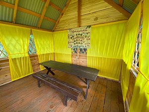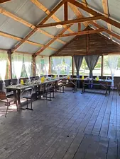 Читать полностьюПавильон «Куштау» рассчитан на размещение до шестидесяти человек и полностью закрыт, что обеспечивает комфорт и возможность проведения мероприятий в любую погоду. В помещении есть холодильник и кухонная зона с раковиной, а под навесом недалеко от него оборудована мангальная зона.