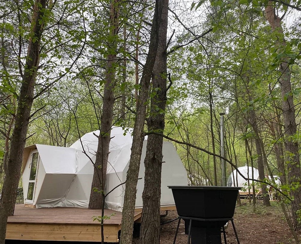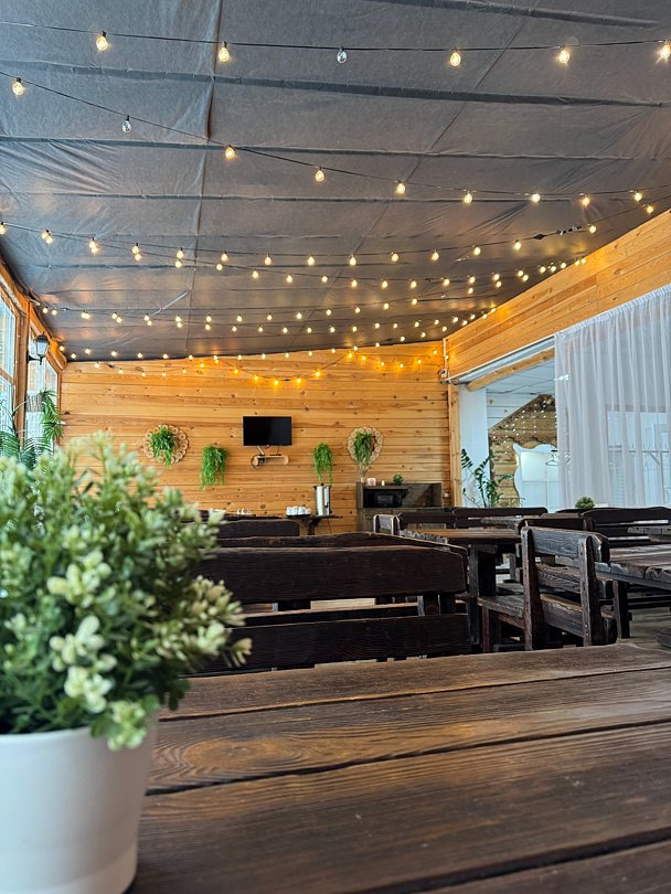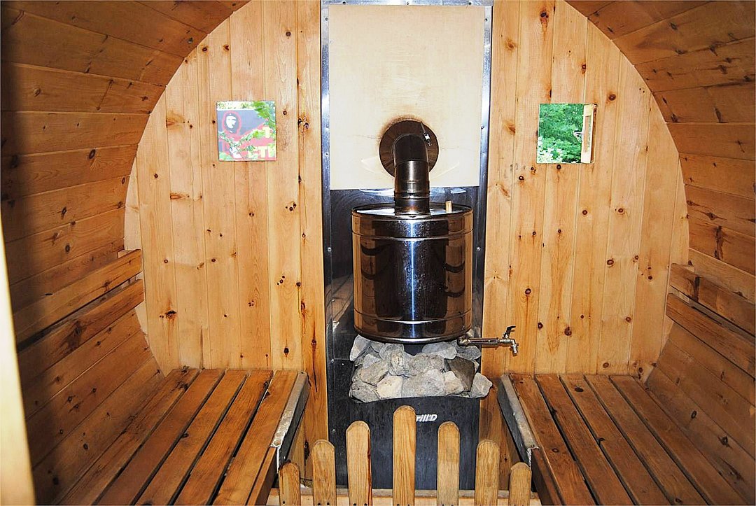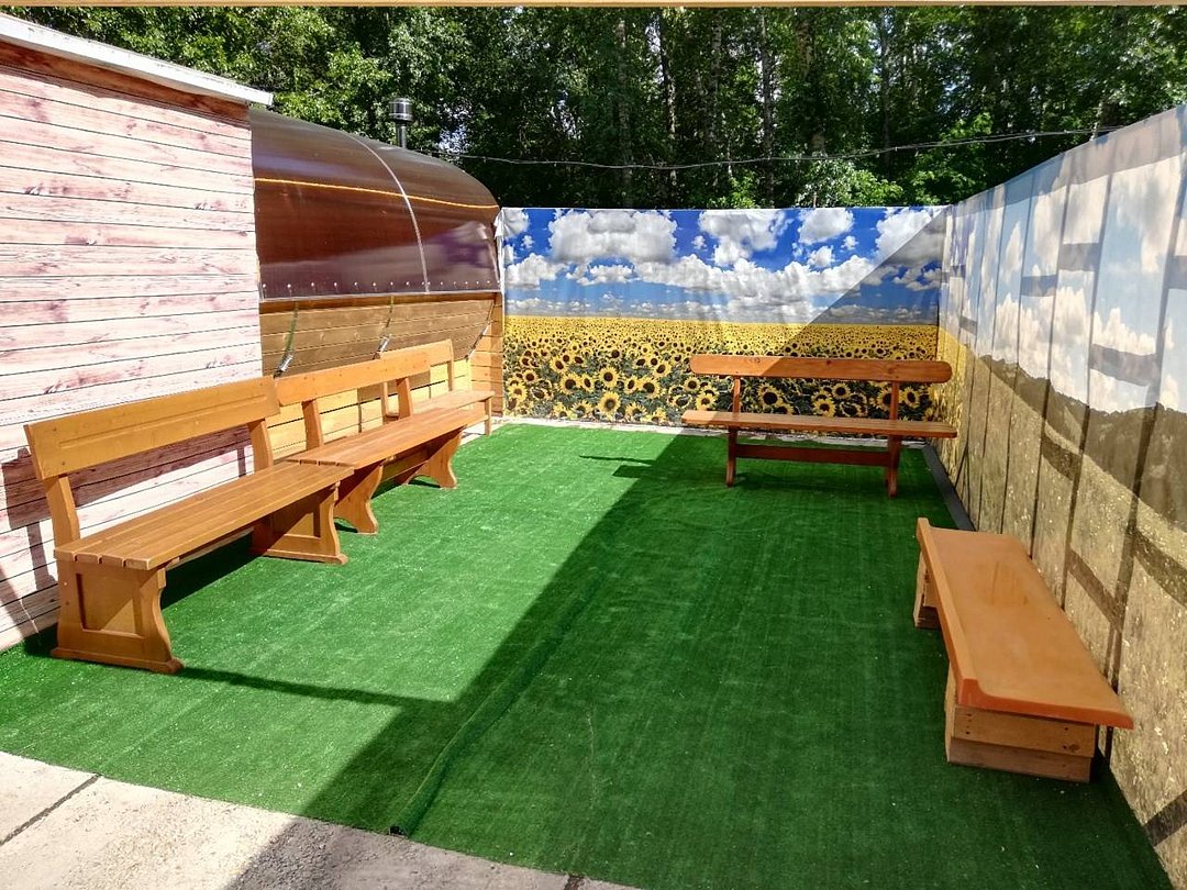 Баня-бочка из сибирского кедра на дровах вмещает до шестнадцати человек, в которой можно хорошо попариться. Для тех, кто любит шашлык, есть крытая веранда для барбекю, где можно приготовить вкусные блюда на открытом огне и насладиться отдыхом на свежем воздухе, независимо от погодных условий.