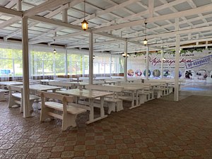 НедостаткиНа территории все старое и рухлое.Батут большой порван-зашит заплатой.На улице вода в детском бассейне чистая,но холодная.Во взрослом бассейне вода не менялась наверное очень давно-просто черная.Территория хоть и большая,но не ухоженная.Мангальные зоны все старые.Завтраки на троечку-без выбора.Для детей на такой огромной территории можно было сделать поуютнее-а так все устаревшее и заросшее.Общее впечатление на 3 с минусом.Конечно еще все настроение испортил дождь.Потому,что в плохую погоду для детей старше 7 лет нет ничего