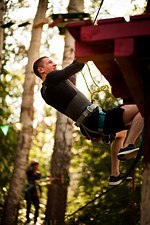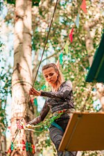 Еще одним аттракционом в парке является троллейная линия. Спуск по тросу с высоты десять метров подарит незабываемые эмоции как взрослым, так и детям.