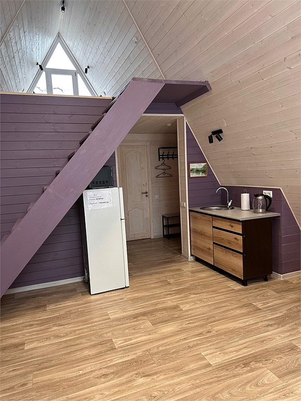 В доме есть все необходимое для комфортабельного проживания, чтобы вы могли расслабиться и посвятить время себе и своим «близким». Гостиная, большой телевизор (Smart-TV), лофт, кондиционер, кухонная зона: холодильник, СВЧ-печь, комплект посуды на шесть персон, стол, стулья.