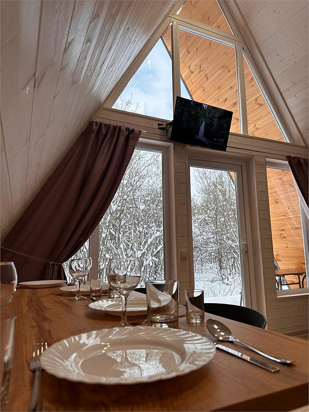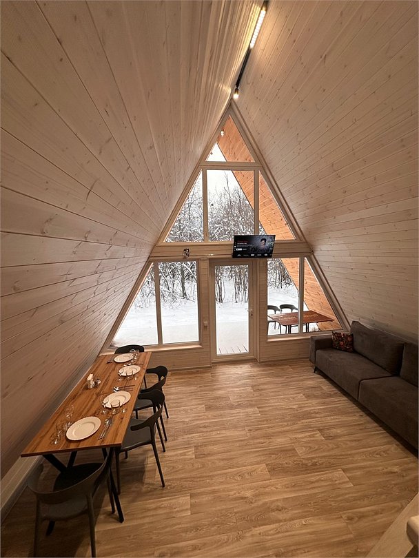 Дом А-Frame №8 «Grand» с гидромассажной купелью и сауной! Комфорт в сердце природы Забудьте о городской суете и окунитесь в атмосферу умиротворения и безмятежности, выбрав отдых в А-Frame № 8. Этот дом – воплощение комфорта и гармонии с природой.