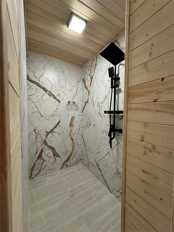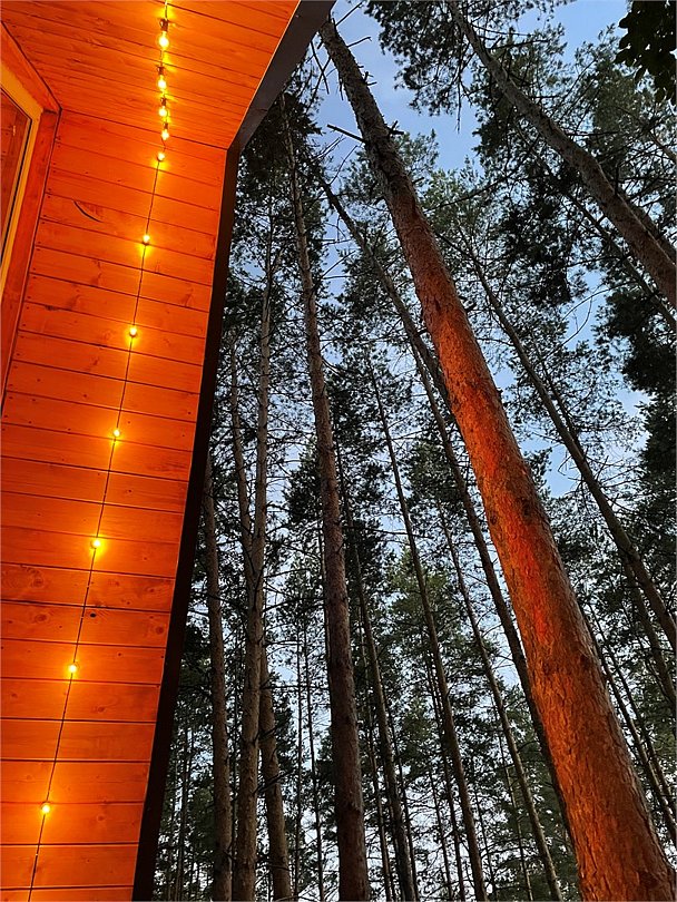 Здесь всё продумано для отдыха: теплая атмосфера внутри и релакс на свежем воздухе с элементами настоящей сибирской бани. Спа-зона: ароматная сауна прямо в доме — идеальна для вечернего расслабления. Сибирский банный чан под открытым небом — уютное погружение в горячую воду на свежем воздухе рядом с домом, особенно красиво вечером под звёздами.