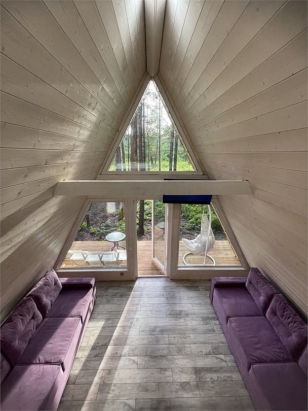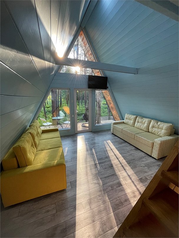 Дом A-Frame №1 «Loft» с сауной и чаном! Комфорт в сердце природы. Этот стильный A-Frame дом создан для тех, кто ищет уединение и спокойствие, не жертвуя уютом.