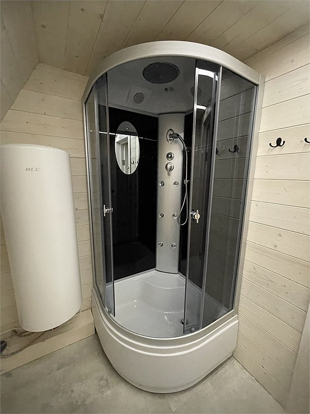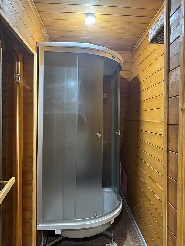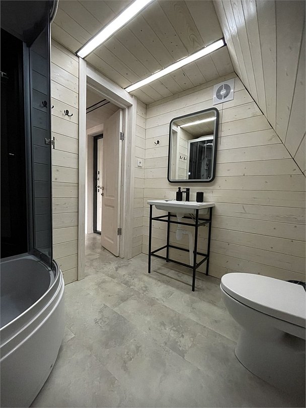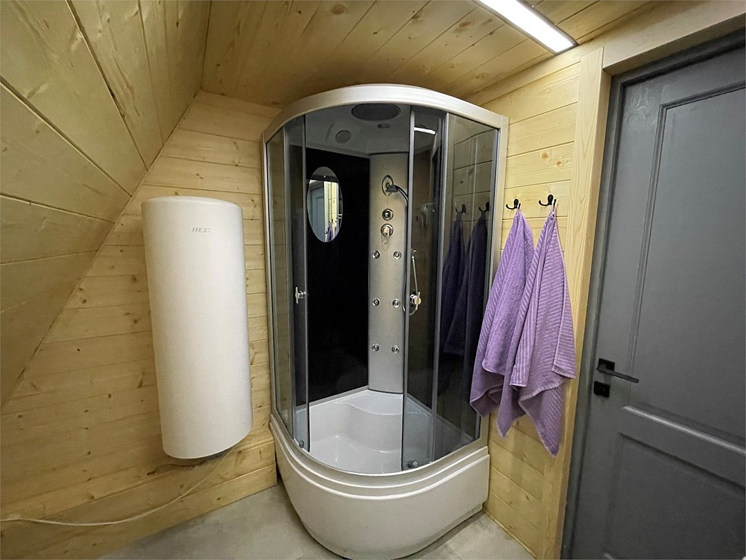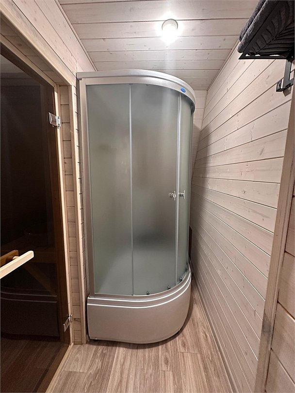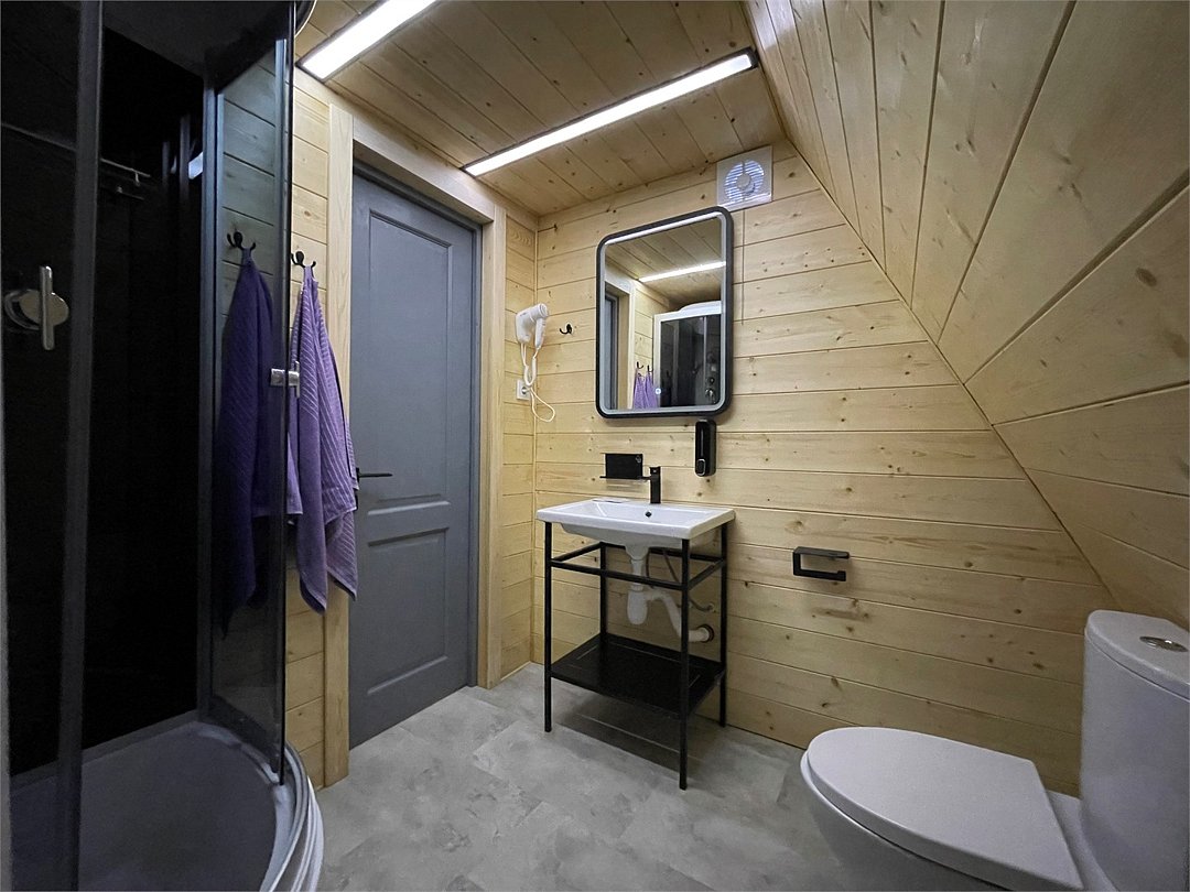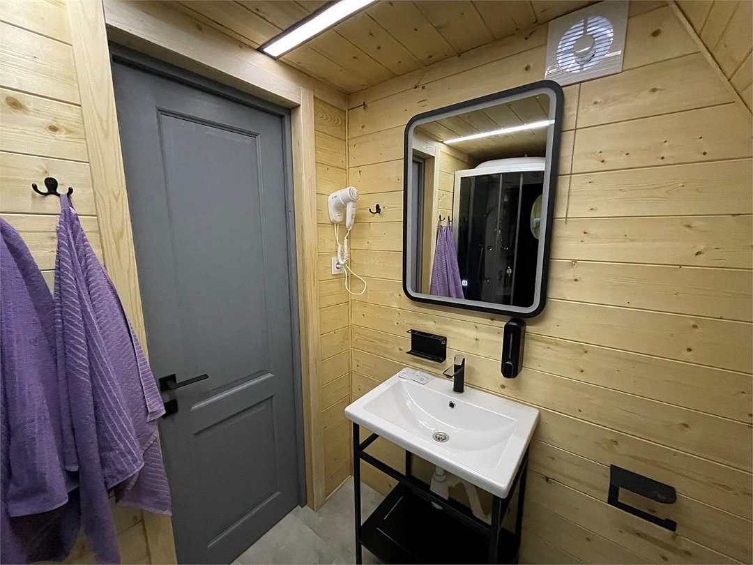 Удобства: душевая кабина с гидромассажем, санузел, раковина, фен, сибирский банный чан; дополнительно: тапочки, полотенца, Wi-Fi.